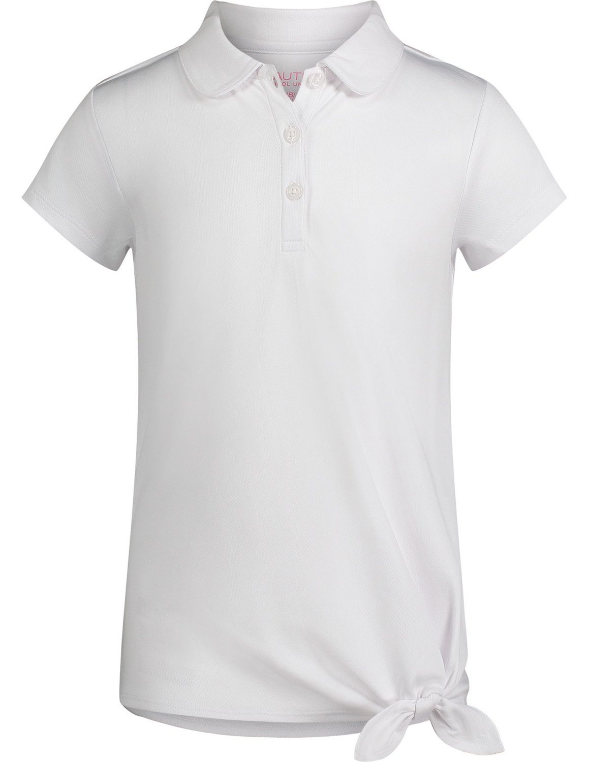 Give your outfit a sweet touch with the Nautica Girls' Performance Tie Front Plus Size Polo Shirt. The polyester material provides a comfortable feel, while the moisture wicking technology helps keep you cool and dry. The twist tie on the front delivers a stylish look.