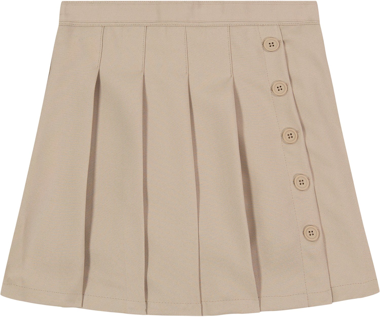 Add a dainty touch to your school outfit with the Nautica Girls' Pleated Scooter Skort. The 100% polyester construction ensures a soft feel, and the pleated design and 5-button detail expresses an eye-catching appearance. A semi-elastic waistband promotes mobility, and the shorts beneath the skirt make sure you stay covered.