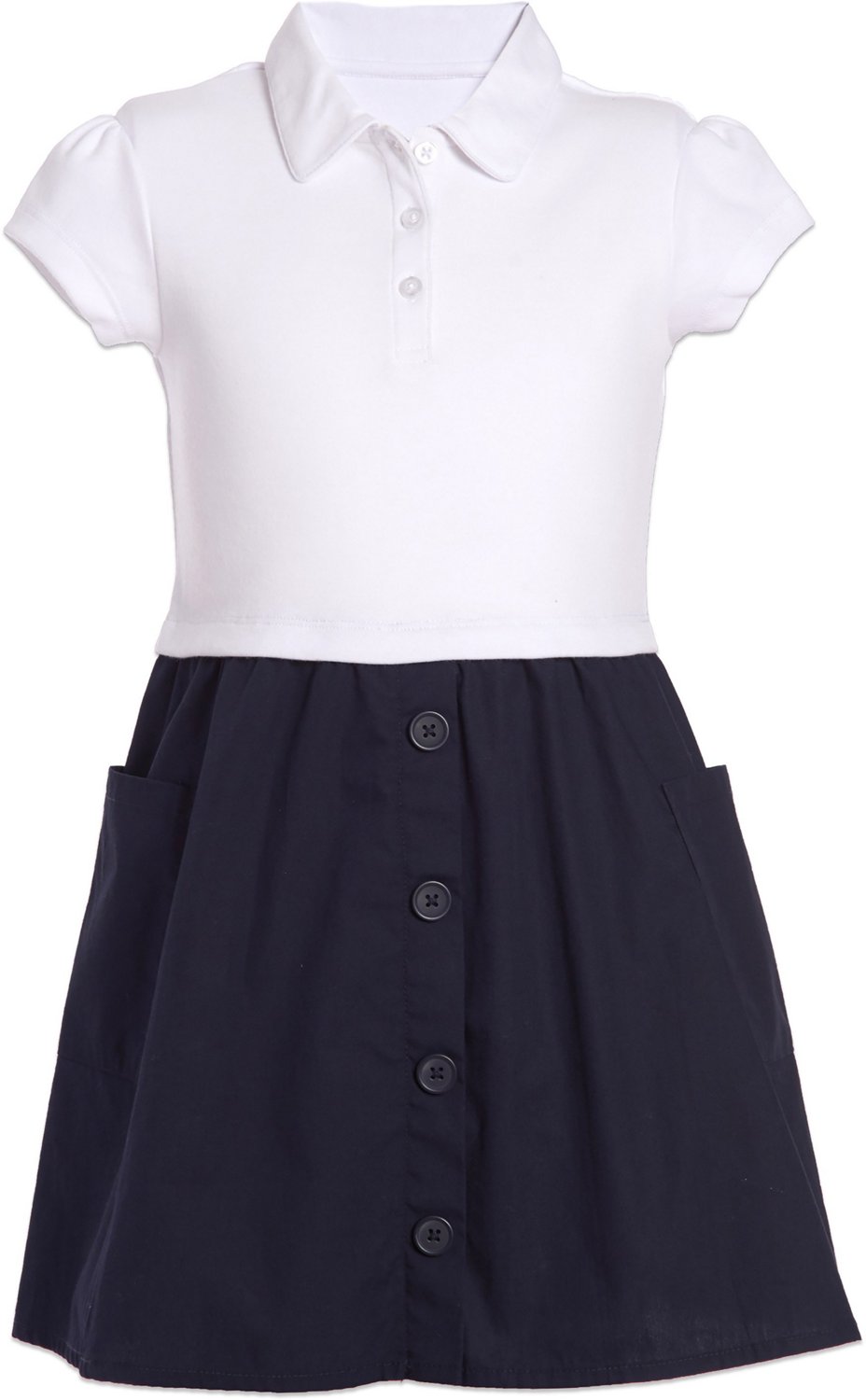 Enjoy a day of school activities sporting the Nautica Girls' Plus Interlock Poplin Dress. The pockets allow you to safely carry your valuables, and the cotton/polyester construction delivers comfort. A 2-tone design and decorative button placket highlight your stylish side.