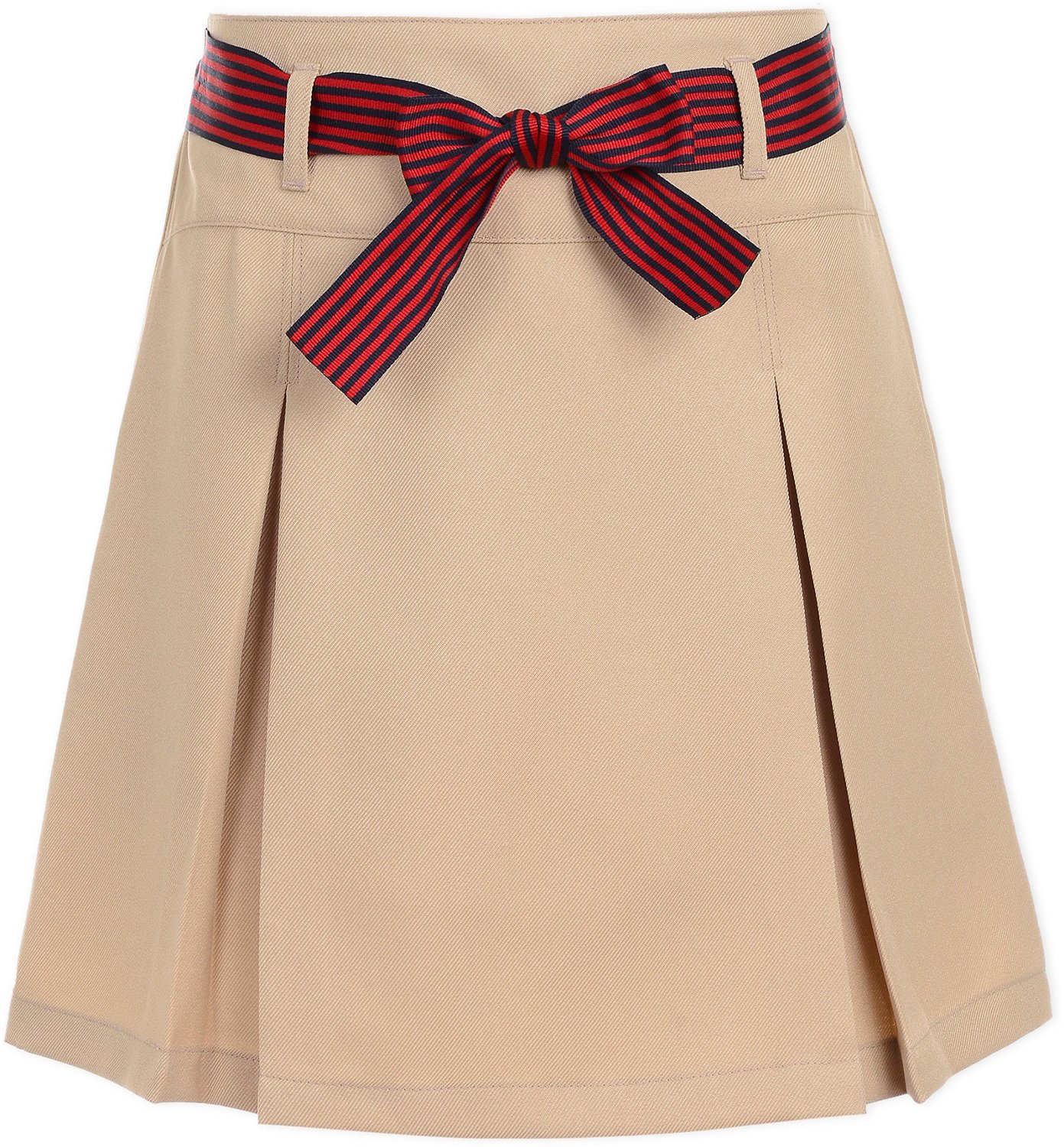Add a dainty touch to your school outfit with the Nautica Girls' Plus Pleated Scooter Skort. The 100% polyester construction ensures a soft feel, and the pleated design and 5-button detail expresses an eye-catching appearance. A semi-elastic waistband promotes mobility, and the shorts beneath the skirt make sure you stay covered.