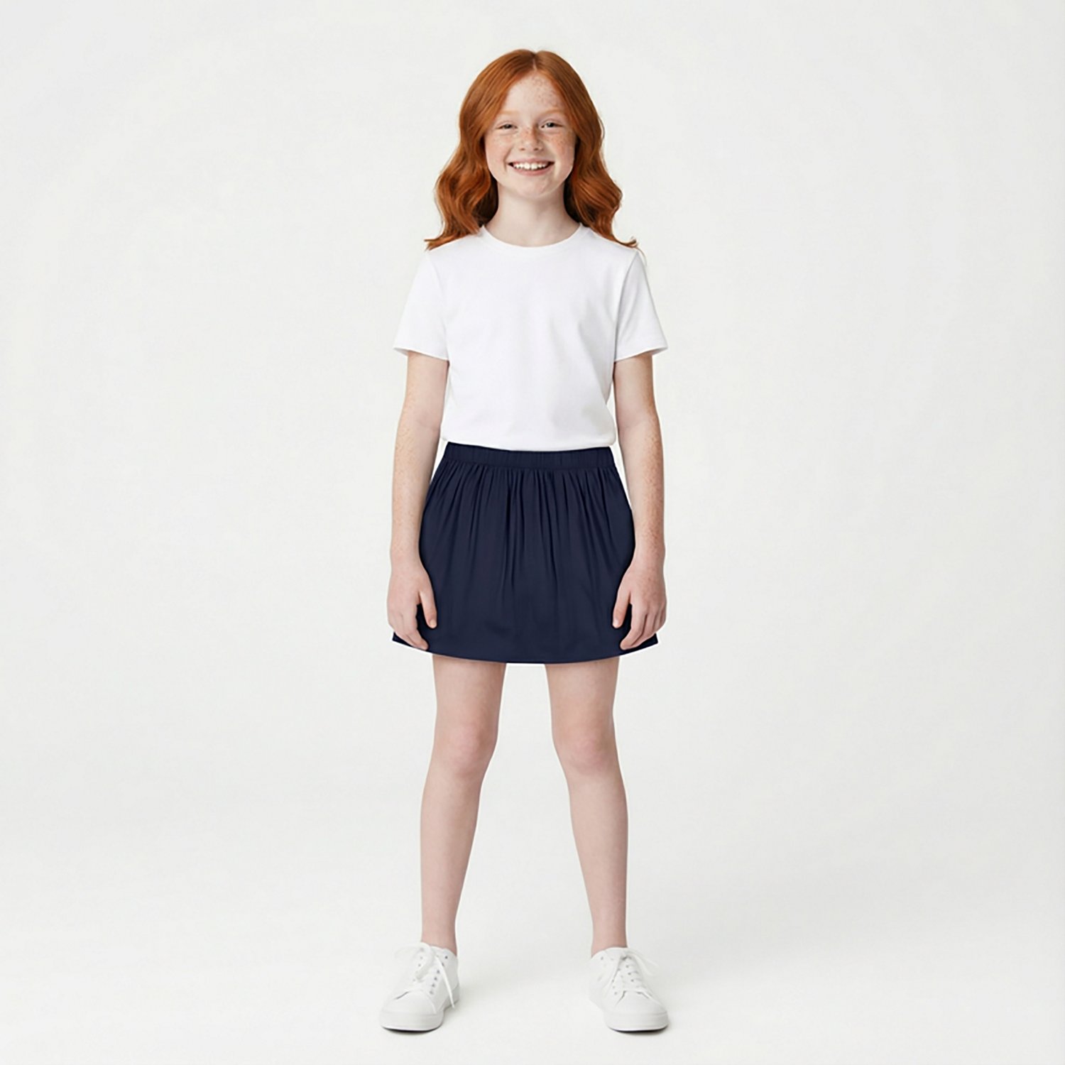School is here with the Nautica Girls' Rayon Scooter Skort. The rayon material provides a comfortable feel, while the encased elastic waistband offers a custom fit. The pull on design allows for easy on/off.