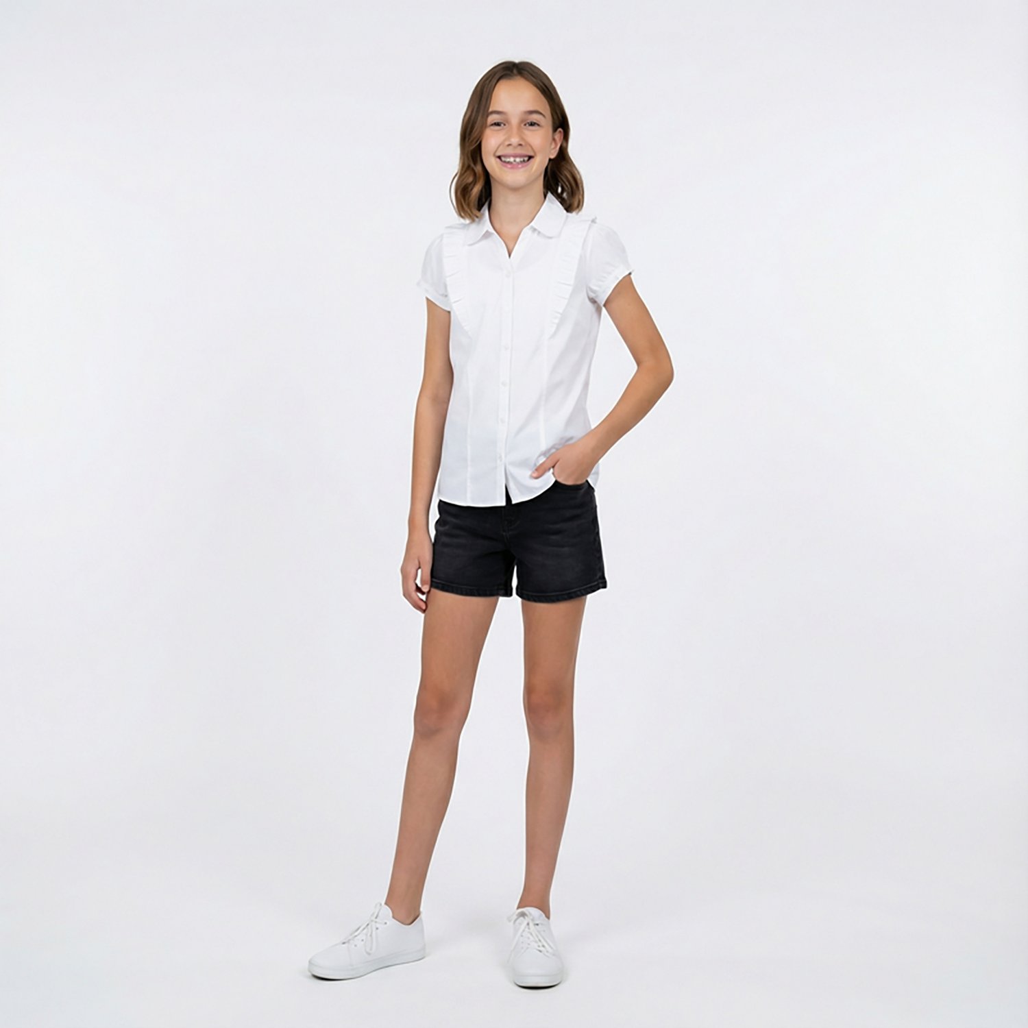 Feel the sun on your skin with the Nautica Girls' Woven Plus Size Blouse. The cotton and polyester material provides a comfortable feel, while the ruffle trim delivers a stylish touch.