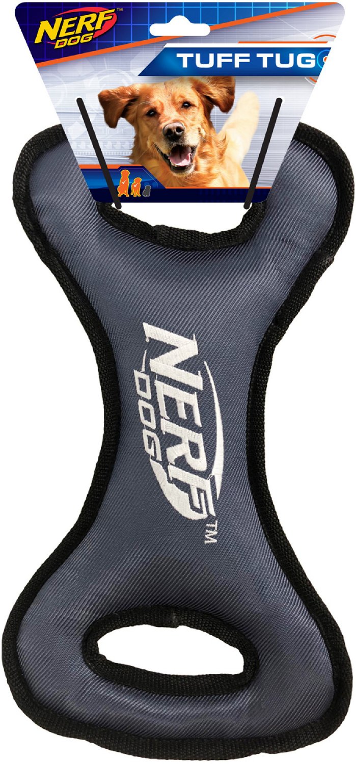 Have fun with your dog while helping it grow stronger with the NERF Dog 12.5 in Tuff Rubber Nylon Plush Infinity Tug. Made from durable rubber and nylon, this foot-long tug offers hours of fetch, tug-of-war, and other doggy games.