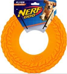 Enjoy hours of action-packed fun with man's best friend and the NERF Dog DogTrax 10 in Tire Flyer. Designed with treads on the outside like a real tire, this dog toy is fun for animals to chew and floats in water, so you can play on the shore.