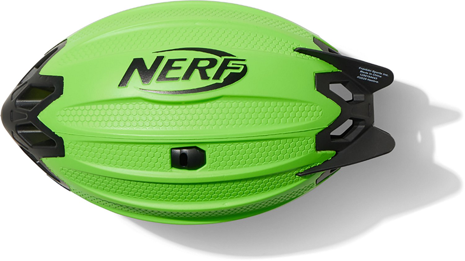 This NERF Vortex Rocket Football makes practicing passes, catches and kicks fun for all ages. Its PU foam construction stands up to frequent use, while its integrated air holes and 2-in-1, 3-fin tail keep it sailing aerodynamically through the air with that trademark whistle. A hollow core and molded grip simplify handling and keep tosses and grabs easy.