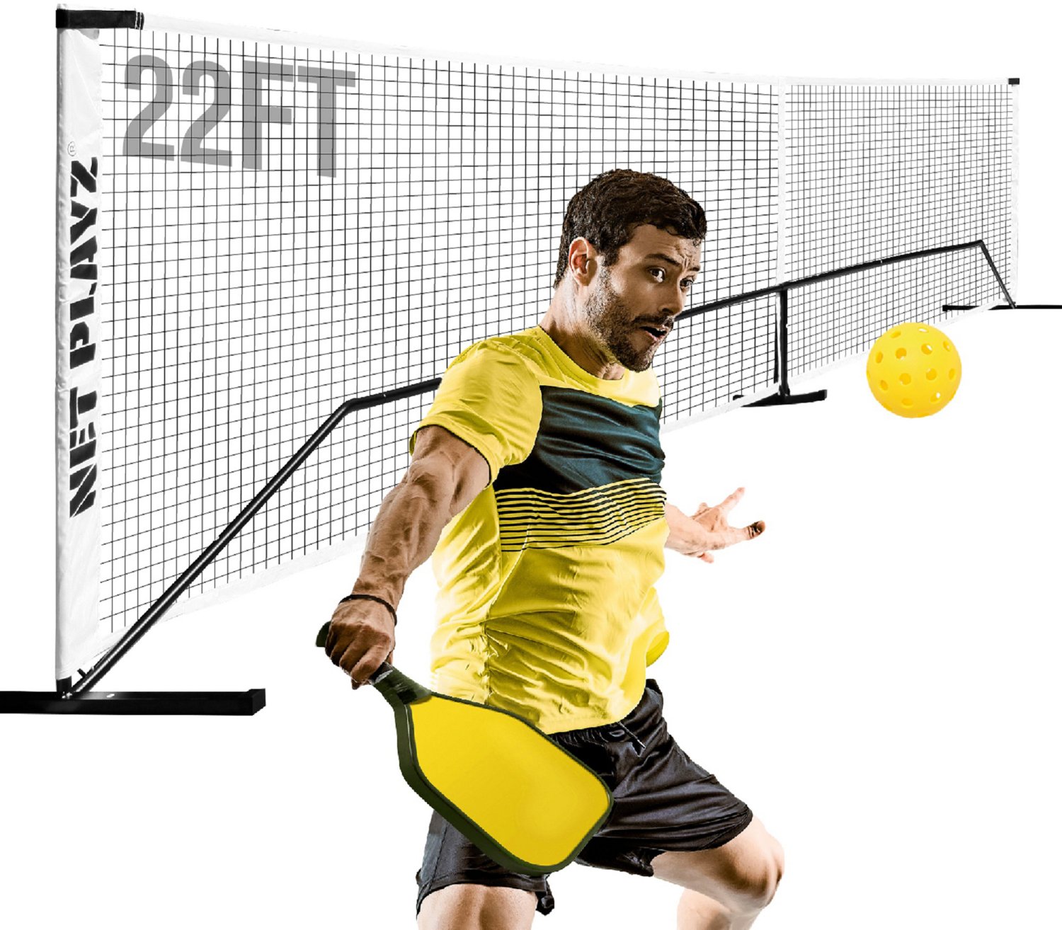 Set up the NetPlayz 22 ft Pickleball Net and have a fun game wherever you are. This portable net meets USA pickleball standards for a regulation size, and it features a steel base, an advanced tension system and interlocking technology to help create a reliable playing area.