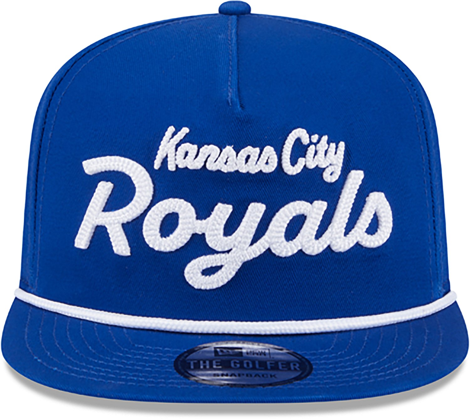 Protect your head and root for your favorite team when you wear the New Era Adults' Kansas City Royals Team Text Golfer Cap. Its snap closure allows for an adjustable fit. The embroidered Kansas City Royals script on the front panel adds a unique touch, and its Kansas City Royals logo on the right-side panel finishes off the design.