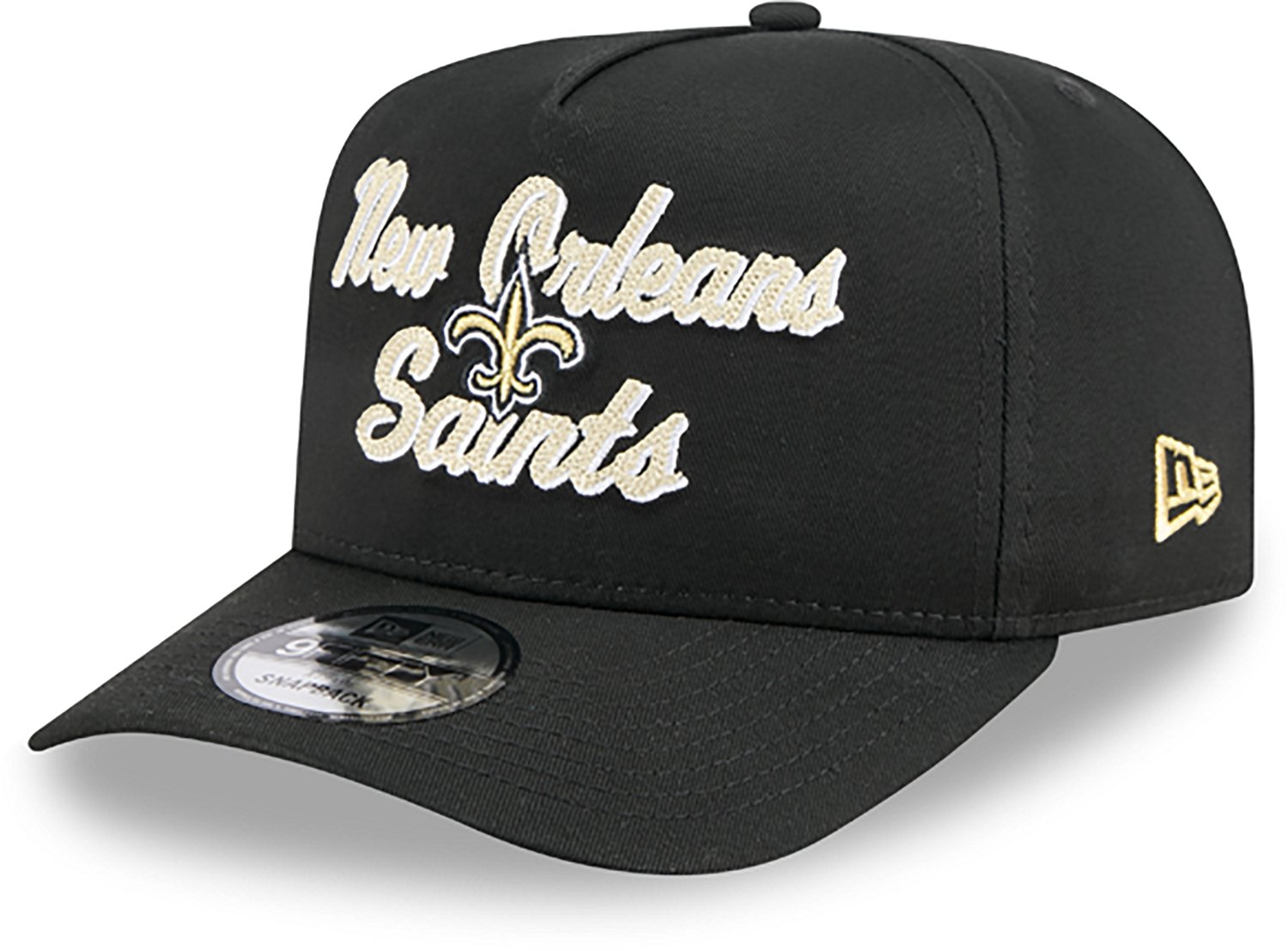 Show off your team spirit wearing the New Era Adults' New Orleans Saints 9FIFTY Chainstitch Cap. It is made of 100% cotton. It has a classic snapback style, and is designed with an open back with a snap or strap closure. The New Orleans Saints logo is on the front.