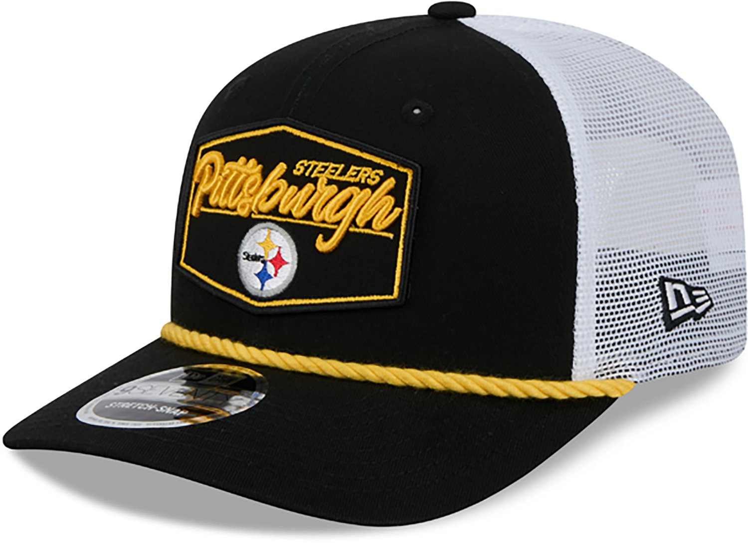 Root for your favorite team when you wear the New Era Adults' Pittsburgh Steelers 9Seventy Team Patch OTC Trucker Cap. It is made of 100% cotton. The full crown creates a more structured look, and its semi-curved visor blocks the sun from your eyes. The performance stretch sweatband keeps sweat from running down your face.