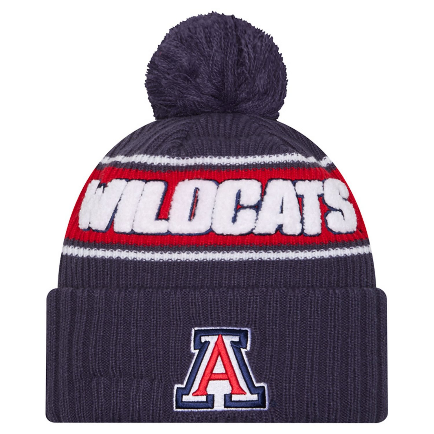 Complement your game day outfit while warming your head when the temperatures drop by sporting this Arizona Wildcats Bold Cuffed Knit Hat from New EraThe team name in embroidered chenille patches across the front crown boldly displays your school pride while the team logo embroidered on the cuff adds a touch of athletic flair With its cozy construction and spirited design this knit hat is the perfect way to showcase your love for the Arizona Wildcats while staying warm and comfortable all season long