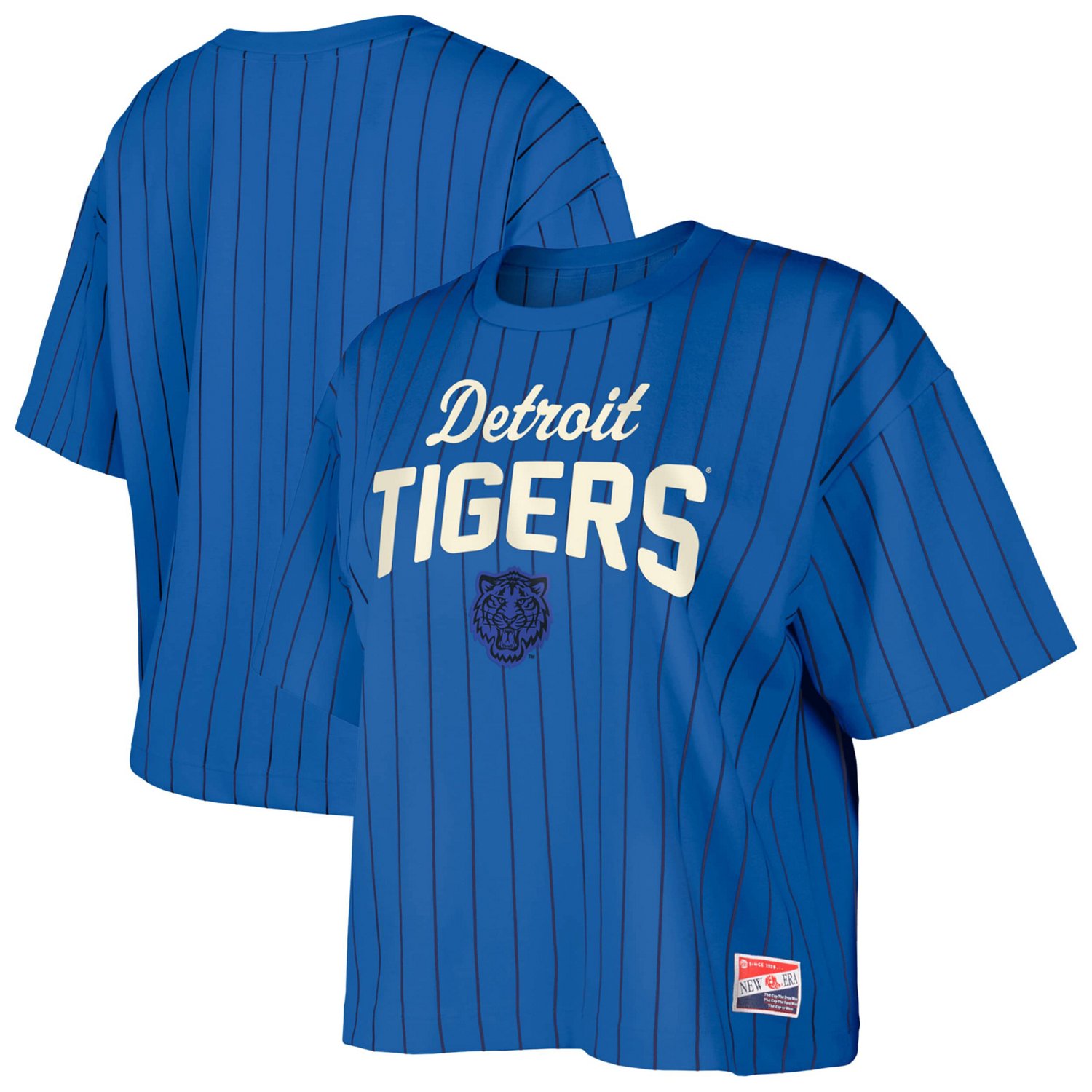 Add a stylish twist to your Detroit Tigers fandom with this New Era City Connect Multiplier Pinstripe Cropped T-Shirt This cropped tee features a sublimated pinstripe design inspired by the team's iconic jerseys adding a touch of classic baseball style to your game-day look With its relaxed fit and cropped hem this shirt offers a trendy and comfortable option for cheering on the Detroit Tigers