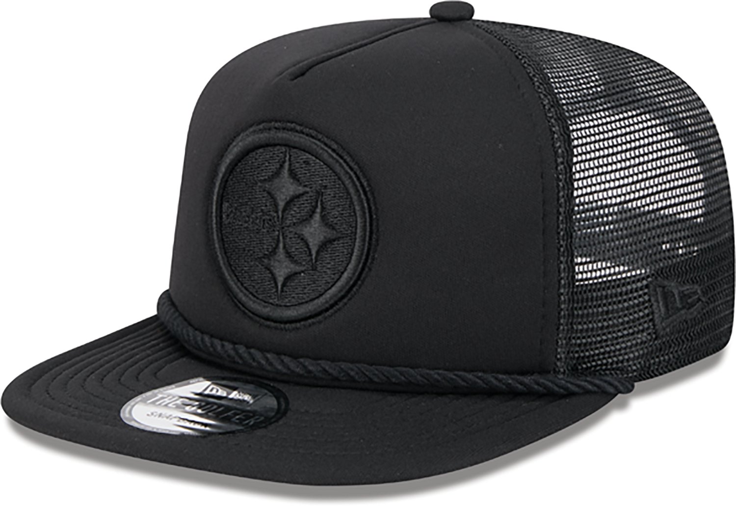 The New Era Golfer Trucker Black Steelers Cap features an adjustable design for a custom fit. The structured insert lends the style of a fitted cap while the flat visor brings the modern look.