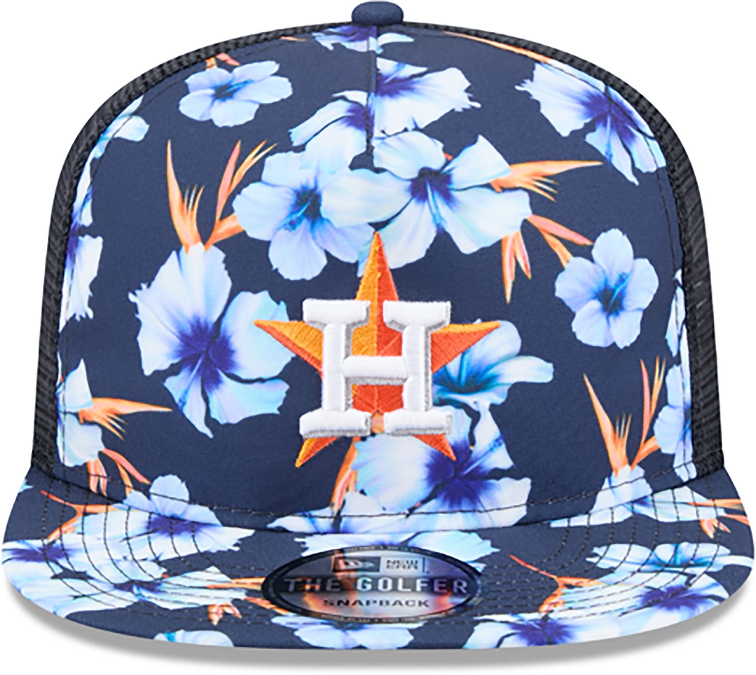 Cheer for your favorite team while keeping your head covered with the New Era Houston Astros Adults' Floral Pattern Golfer Cap. The embroidered logo matches your passion for the club, and you can use the snapback closure to set the best fit around your head. The mesh rear fabric gives the cap breathability, and the floral pattern makes it stand out.