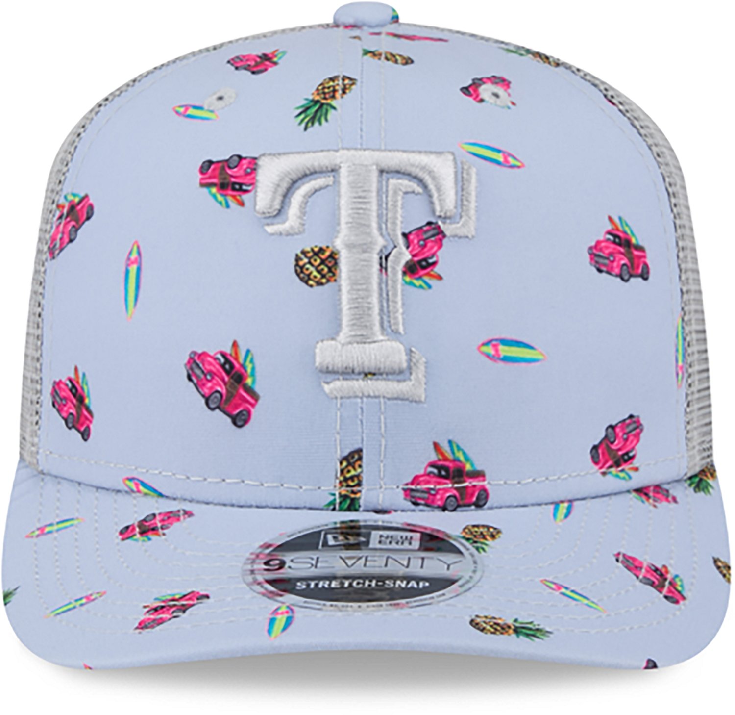 Show off your team spirit with the New Era Men's Texas Rangers Pineapple Pattern 9SEVENTY Cap. The cotton and polyester material provides a comfortable feel, while the team logo shows off your Rangers pride.