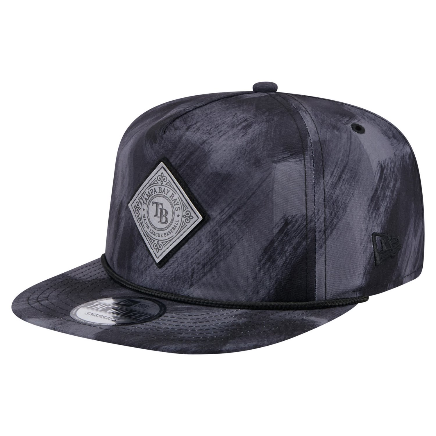 Show off your Tampa Bay Rays pride with this New Era Printed Golfer Snapback Hat With a design inspired by classic '80s and '90s snapbacks this Golfer cap features a semi-structured fit pinched crown and flat visor for a retro look that never goes out of style The sublimated all-over print adds a unique touch while the embroidered fabric applique on the front panel proudly displays the Tampa Bay Rays logo