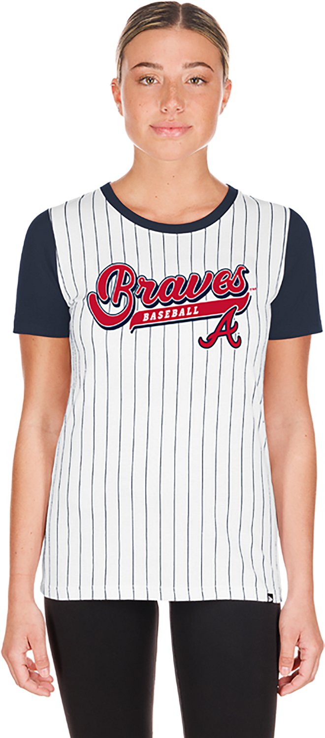 Head to the Braves tailgate sporting the New Era Women's Atlanta Braves Pinstripe T-shirt. The team design highlights your fandom, and the 100% cotton construction withstands wear and tear while feeling soft.