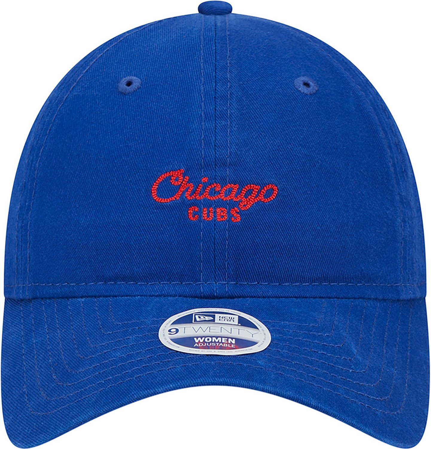 The New Era Women's Cubs Throwback Cross Stitch 9TWENTY Cap is a relaxed fit adjustable style. It is a well-worn, comfortable cap that sits low.