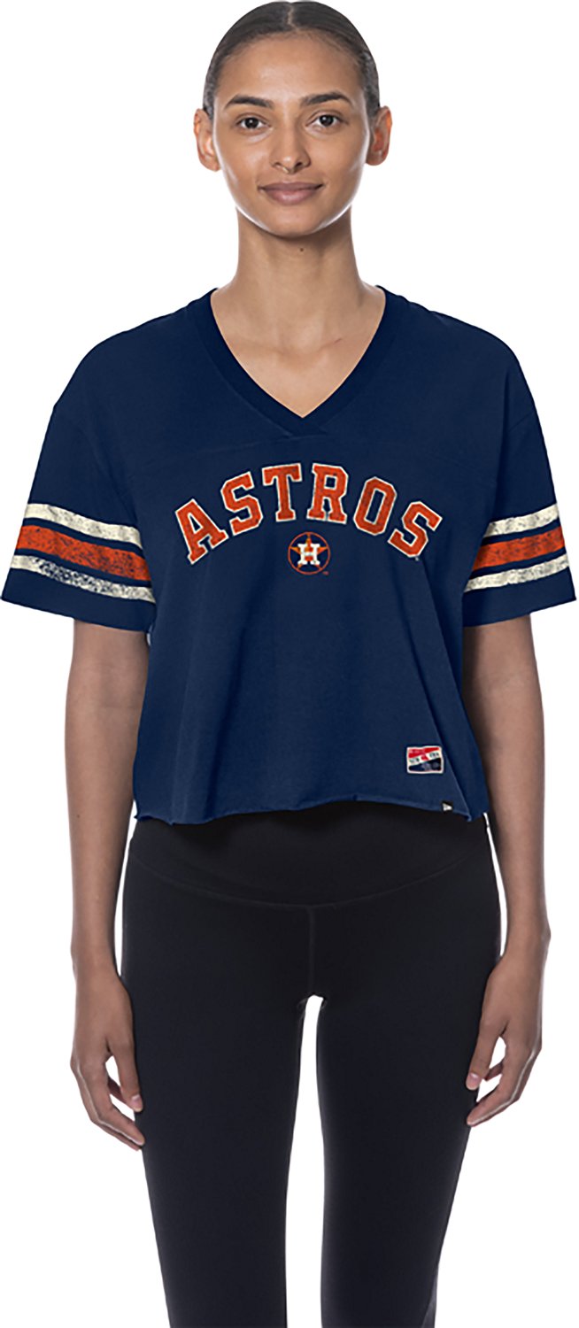 New Era Women's Houston Astros Raw Edge Throwback Cropped Graphic T-shirt