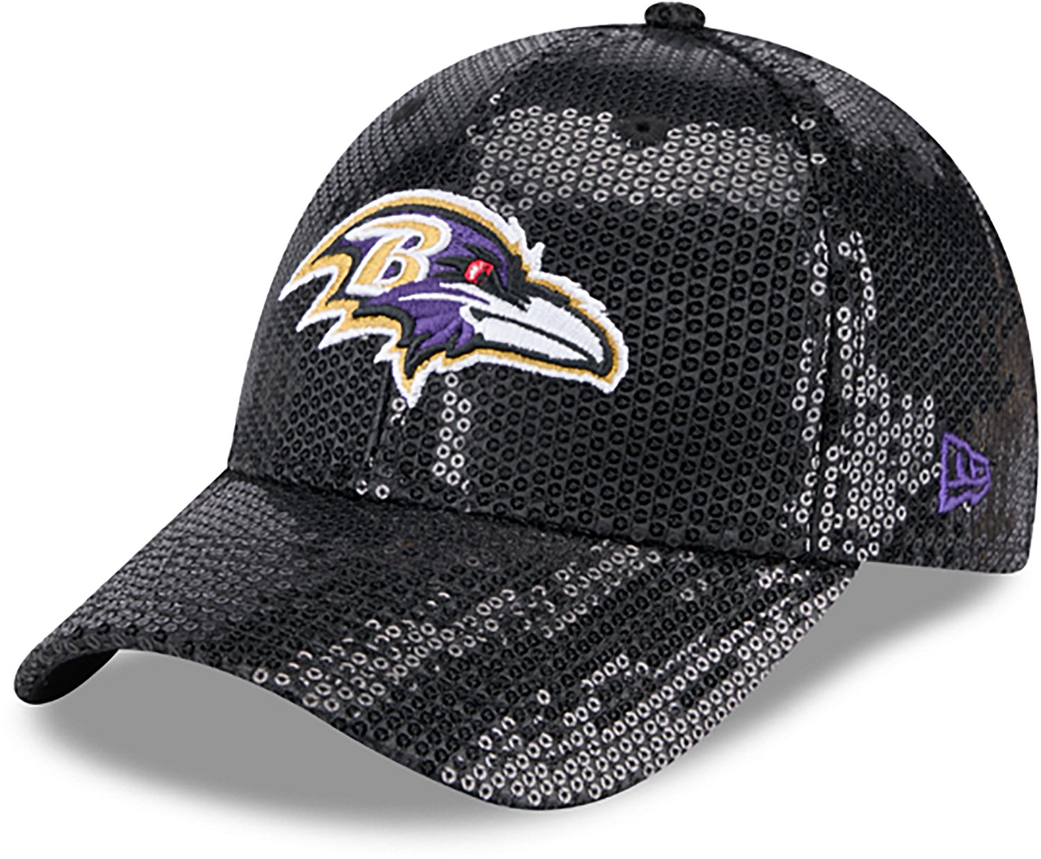 Help showcase your fan pride by wearing the New Era Women's Ravens Sequin OTC 9Forty Cap. This cap features sequin overlay construction to provide a cool look and a team theme that adds sporty style.