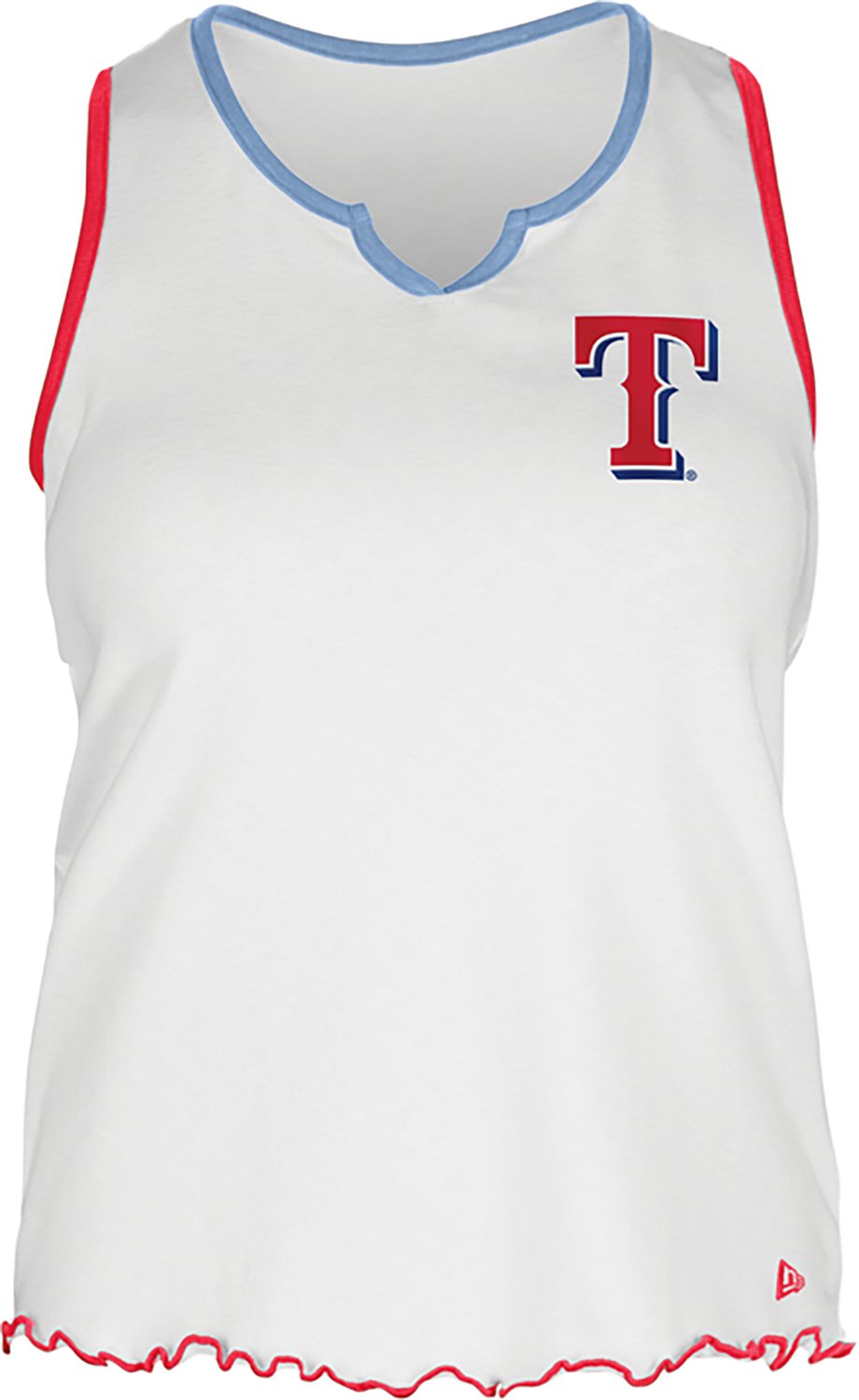 New Era Women's Texas Rangers V-notch Lettuce Hem Tank Top