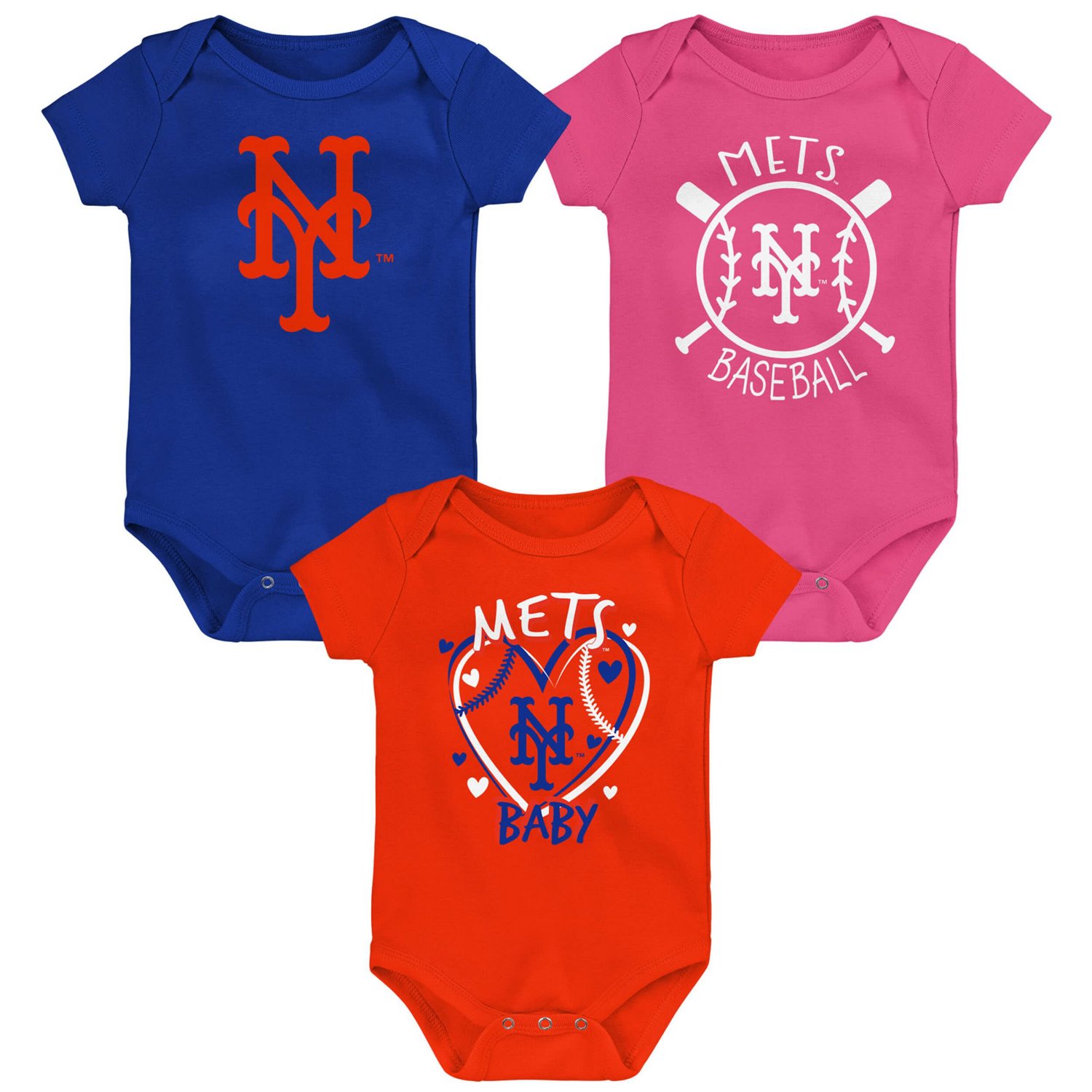 Get your littlest fan outfitted in New York Mets style with this adorable Slide Home Three-Pack Bodysuit Set The lap shoulder neckline and three-button closure make dressing your little one a breeze This set is a grand slam for any New York Mets fan looking to share their love of the game with their newest teammate