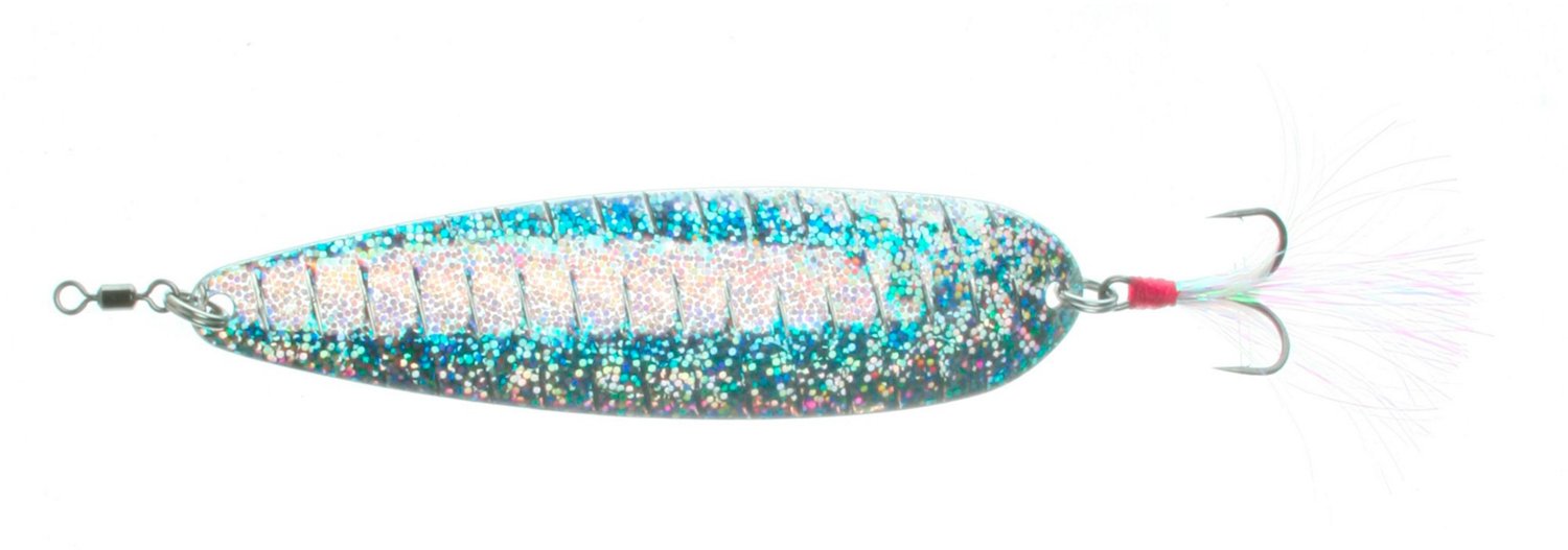 Achieve the perfect flutter using this Nichols Lures Lake Fork Flutter Spoon. The beautiful finish and hand-tied flashabou help draw in fish after fish while spooning. A treble-style hook is attached.