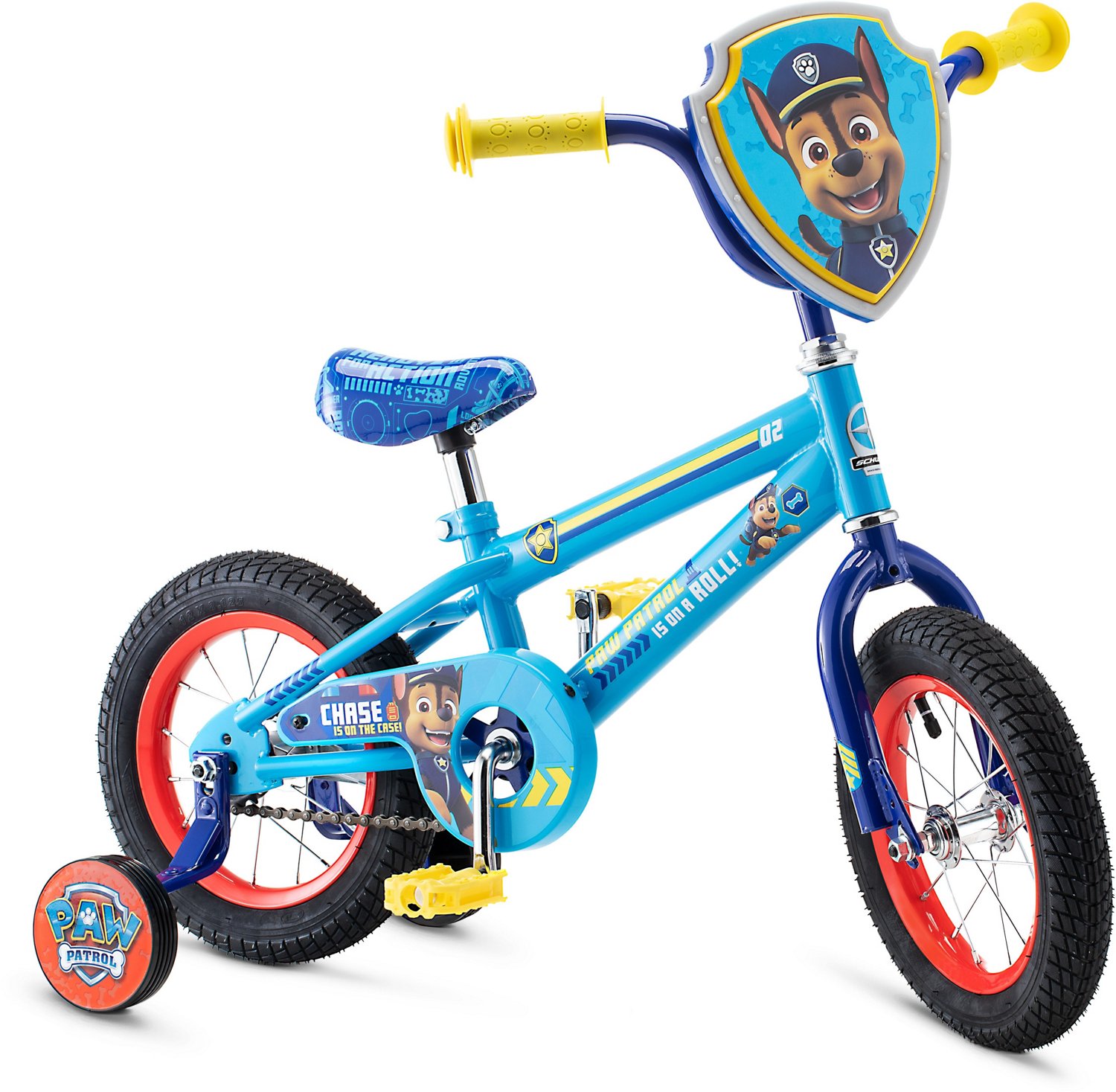 Your child can practice riding in style on the Nickelodeon Kids’ Paw Patrol Chase 12 in Bicycle. The stand-over frame delivers a comfortable fit for younger riders, and the training wheels help your little one stay steady as they learn how to ride. The Paw Patrol Chase handlebar plate and graphics express a fun look they'll love.