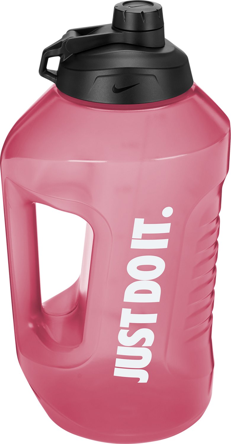 Stay hydrated while working out with the Nike 128 oz Super Jug. This jug is made of polypropylene and silicone for durability holds up to 128 ounces of water or other liquid. The molded handle makes it easy to carry, and the twist-off cap is easy to take on and off.
