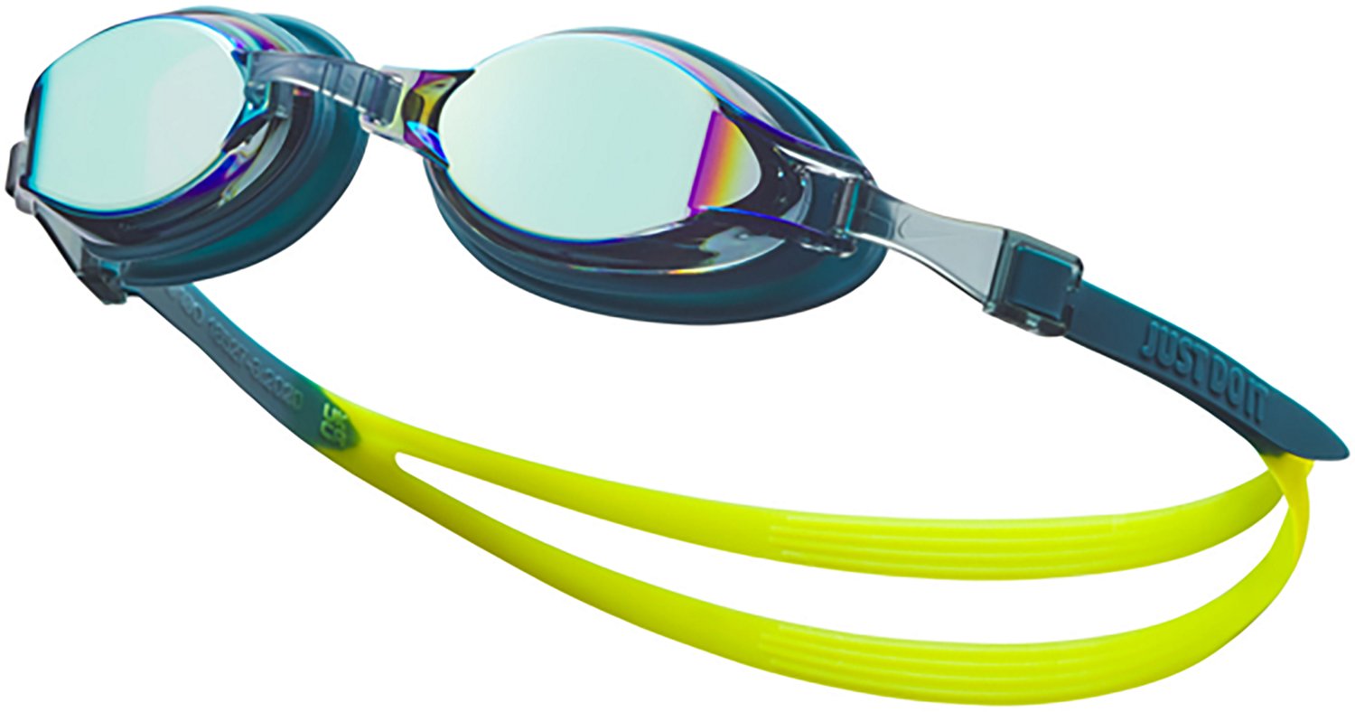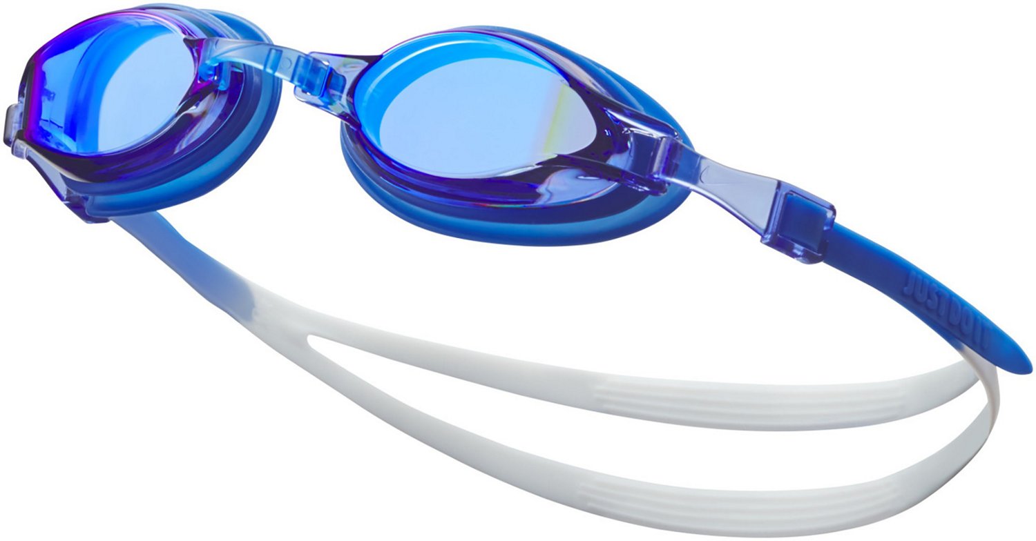 Get your young swimmers ready for the pool with Nike Adult Chrome Mirrored Swim Goggles. The UV-blocking lenses feature a mirrored finish to reduce glare and improve visibility. Cushioned gaskets and a 6-way adjustable nose bridge ensure a secure and comfortable fit.