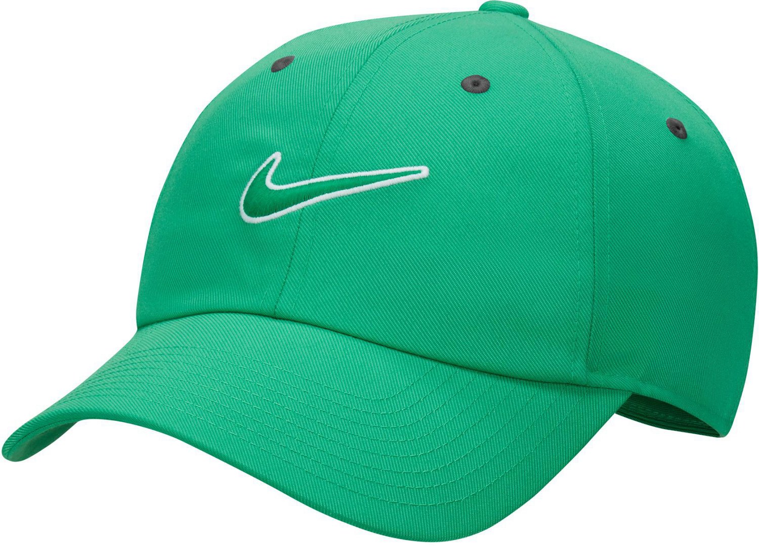 Feel confident and comfortable rocking the Nike Adults' Club U CB Swoosh L Cap. The 100% polyester woven twill construction offers a soft feel all day, and the outlined Swoosh flag graphic shows your brand pride. The embroidered eyelets add a fashionable touch, and the tri-glide closure allows for a custom fit.