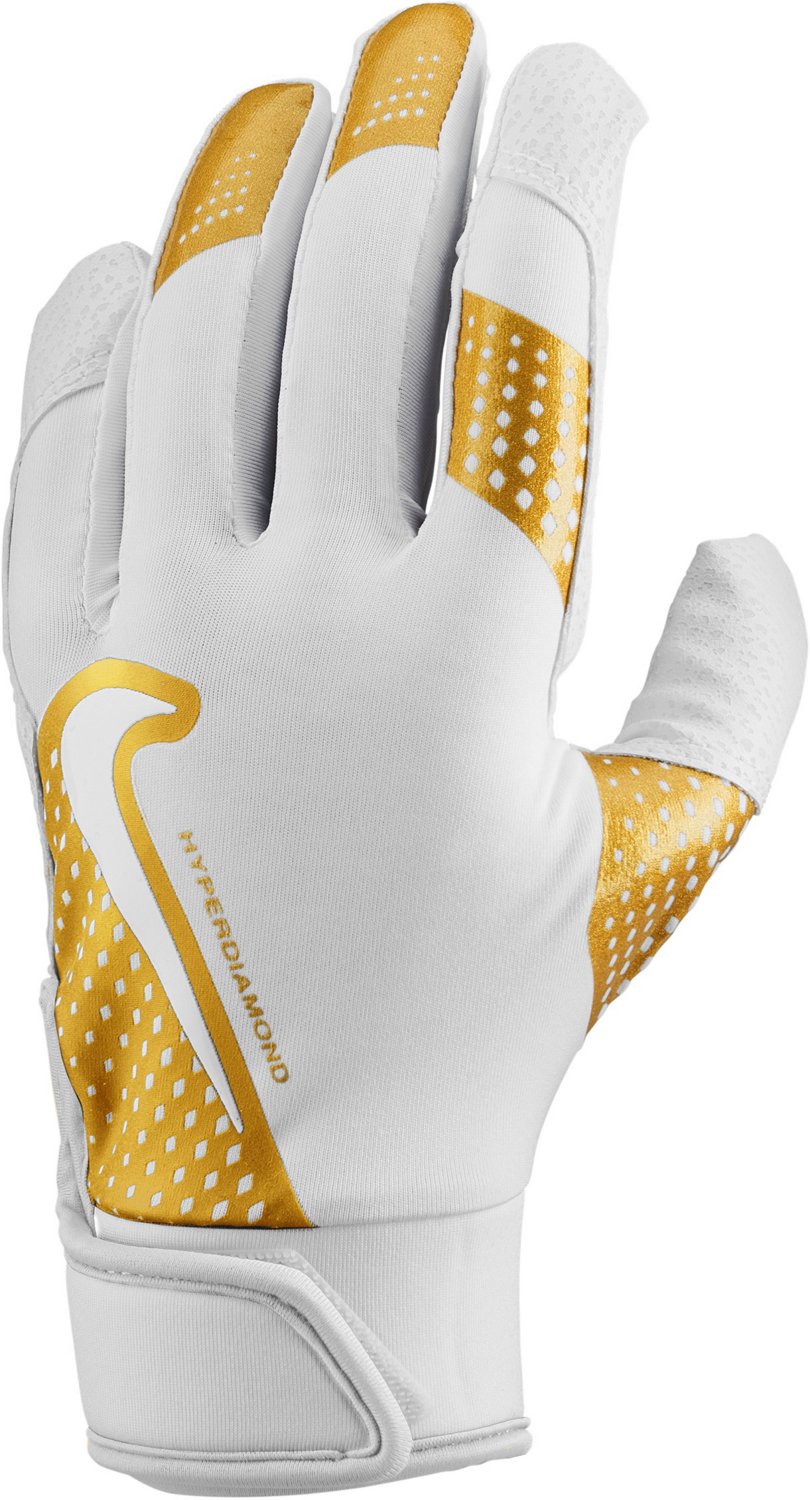 Bat your best with the Nike Adults' Hyperdiamond 2.0 Batting Glove. This glove features a synthetic leather palm for durability. The stabilizing flexible overlay on the back prevents bunching, while the Nike logo adds a stylish touch.