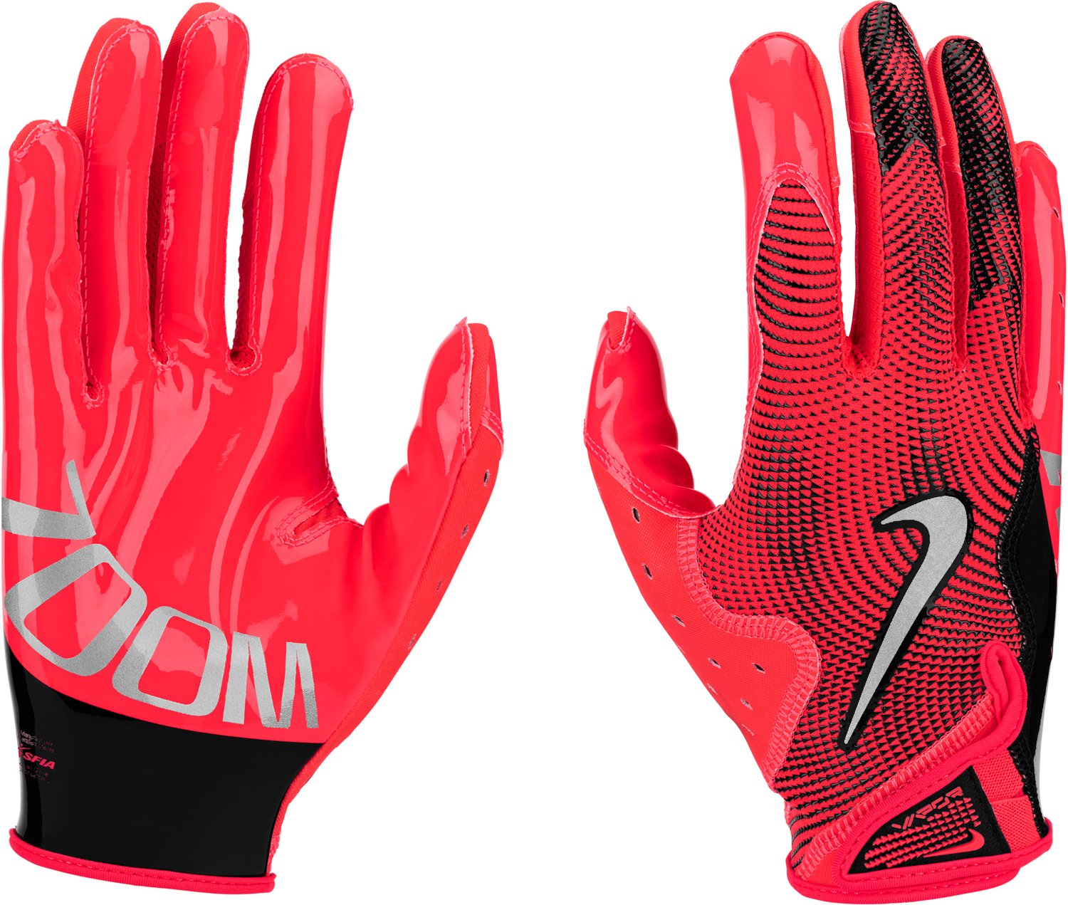 Step onto the field with confidence when you wear the Nike Adults' Vapor Jet 8.0 Energy Football Gloves. The backs of the hand provide lightweight, breathable feel and flexibility, while the Magnigrip+ palm helps enhance grip for secure catches. Finger perforations offer breathability, and the adjustable elastic wrist straps deliver a secure, distraction-free fit.