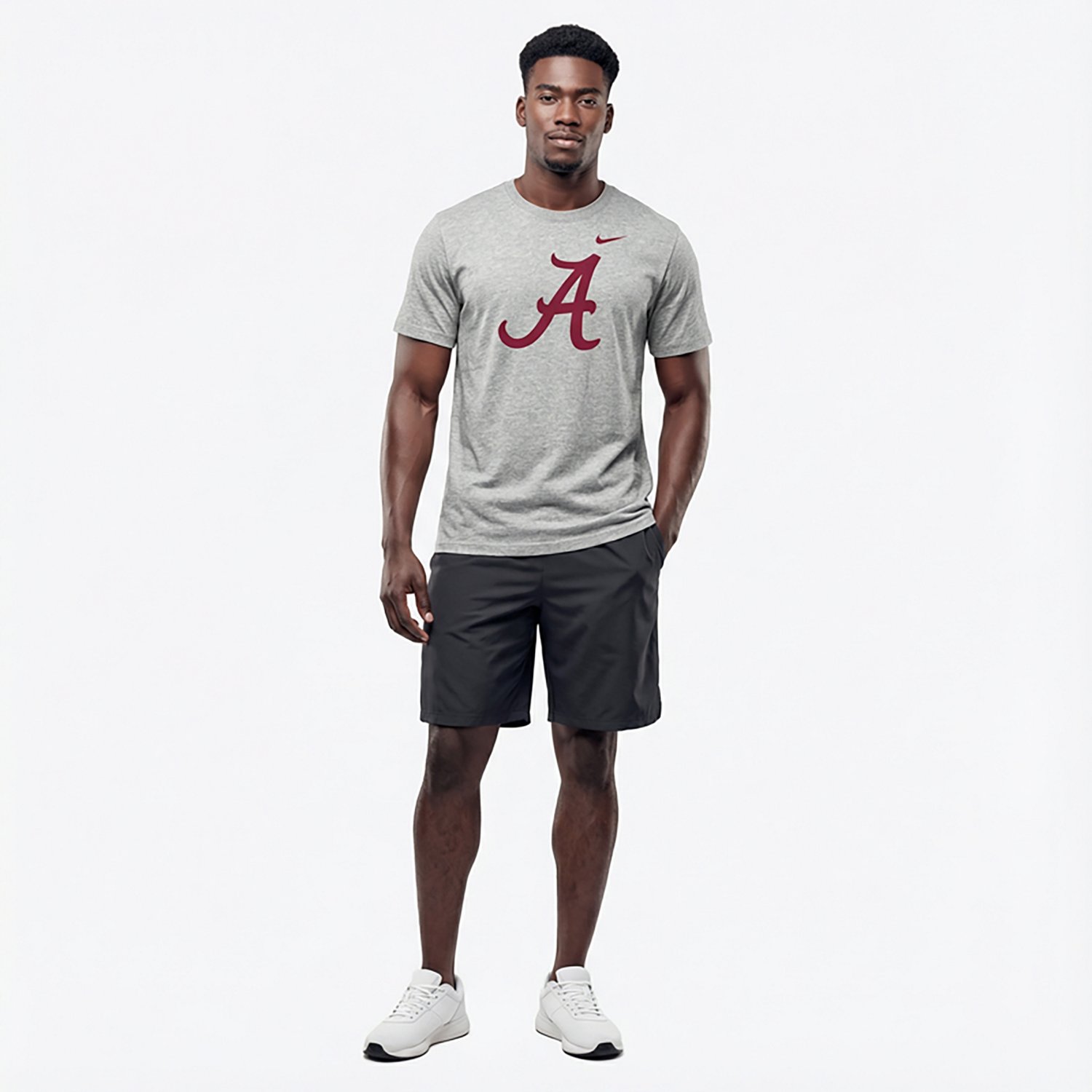 Confidently display your love for the Alabama Crimson Tide with this casual Primetime Evergreen Logo T-shirt from Nike It features a signature Alabama Crimson Tide graphic printed across the chest and comes in a customary single color for a spirited look The crew neck and cotton design make this tee a strong choice to pair with your favorite team cap and rally behind your squad when it's go time
