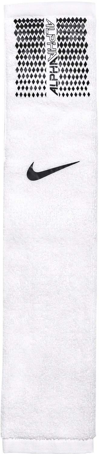 Stay dry during practice with the Nike Alpha Football Towel. This towel is made of absorbent terry material made from cotton and silicone for durability. The adhesive silicone graphic attaches the towel to clothing.