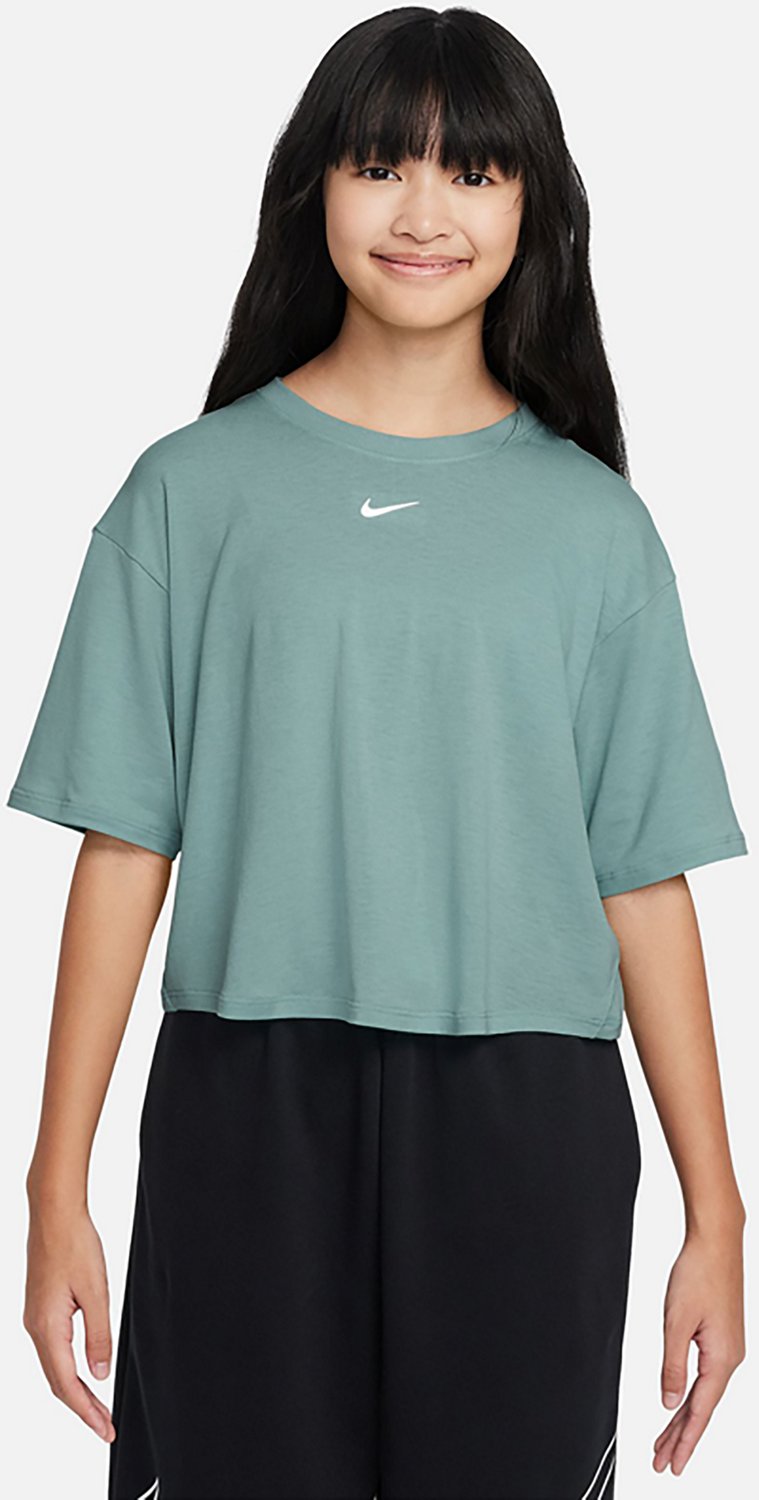 Stay dry and comfortable throughout the day with this Nike Girls' One Relaxed Dri-FIT One Loose Short Sleeve Top. It is made of 81% polyester, 13% cotton and 6% spandex for flexible comfort, and Dri-FIT technology works to wick sweat and dry quickly.