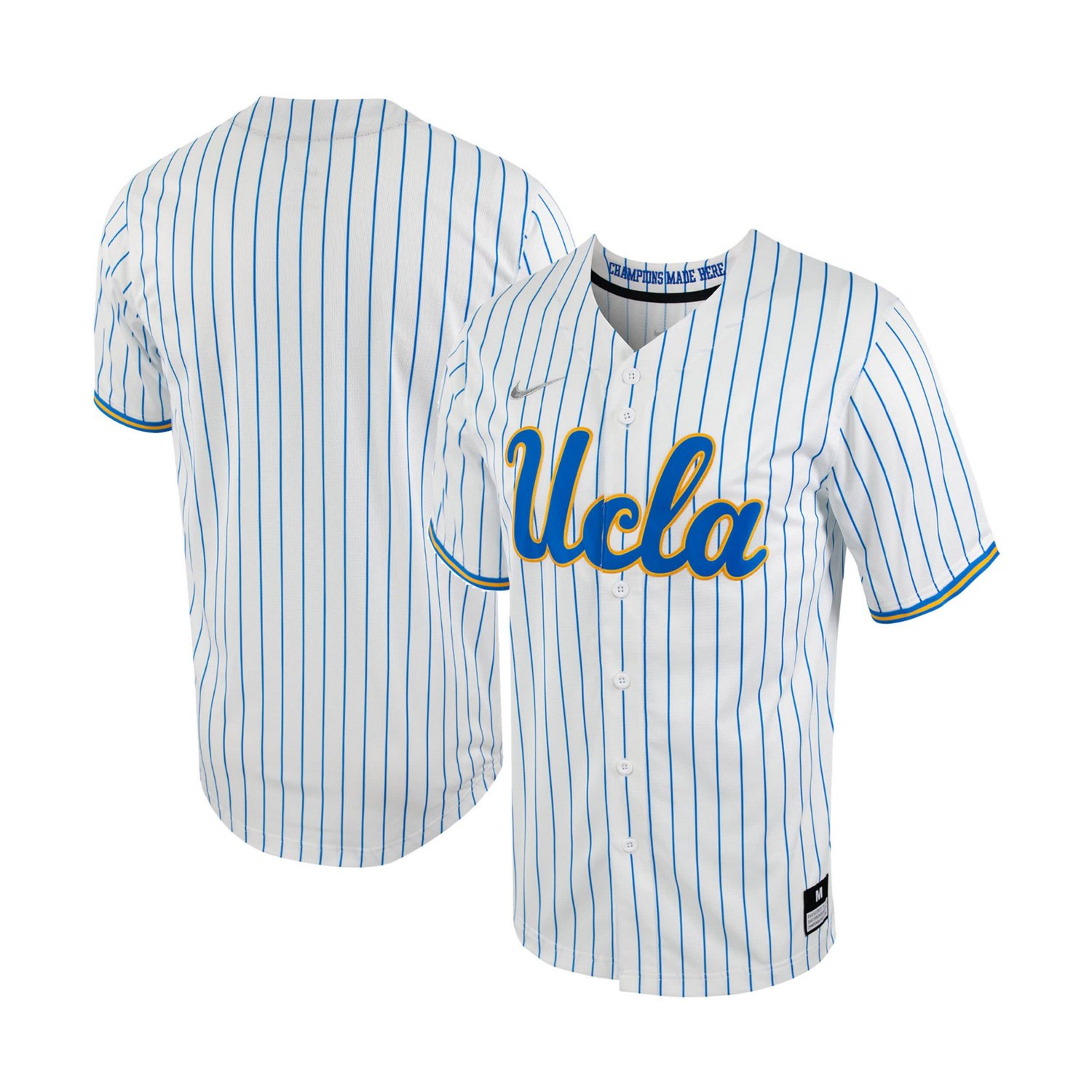 As a die-hard UCLA Bruins fan it's important to look the part This awesome Pinstripe Replica Full-Button Baseball Jersey from Nike lets you do just that Its sleek style moisture-wicking Dri-FIT technology and bold UCLA Bruins graphics make this jersey the perfect addition to your game day outfit