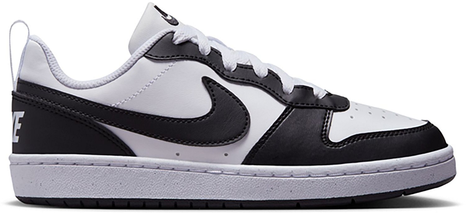 Step out onto the court sporting the Nike Kids Court Borough Low Recraft GS. The graphic design highlights a classic look, and the synthetic leather uppers resist wear and tear. The outsoles with a pivot point tread design and groove channels add grip and support.