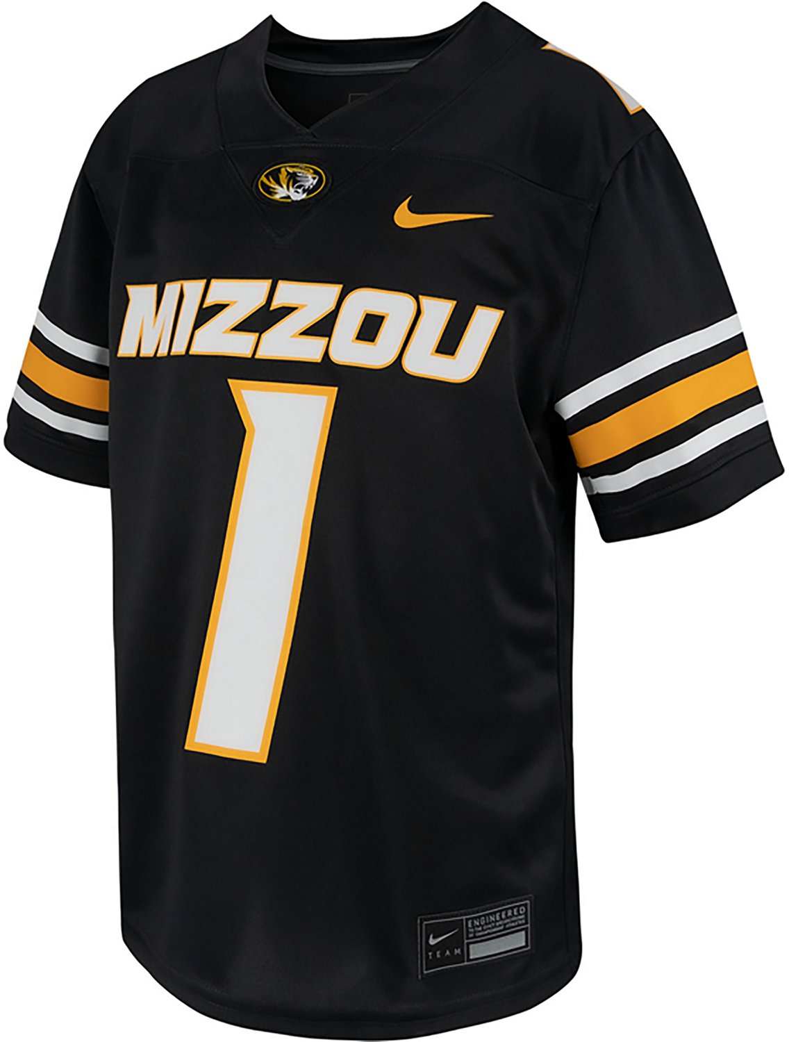 Help get other fans excited for the upcoming game by wearing the Nike Boys' 4-7 Missouri Replica Football Jersey. This jersey offers a realistic look and is made of polyester for comfort. Its team theme helps you stand out from the crowd.