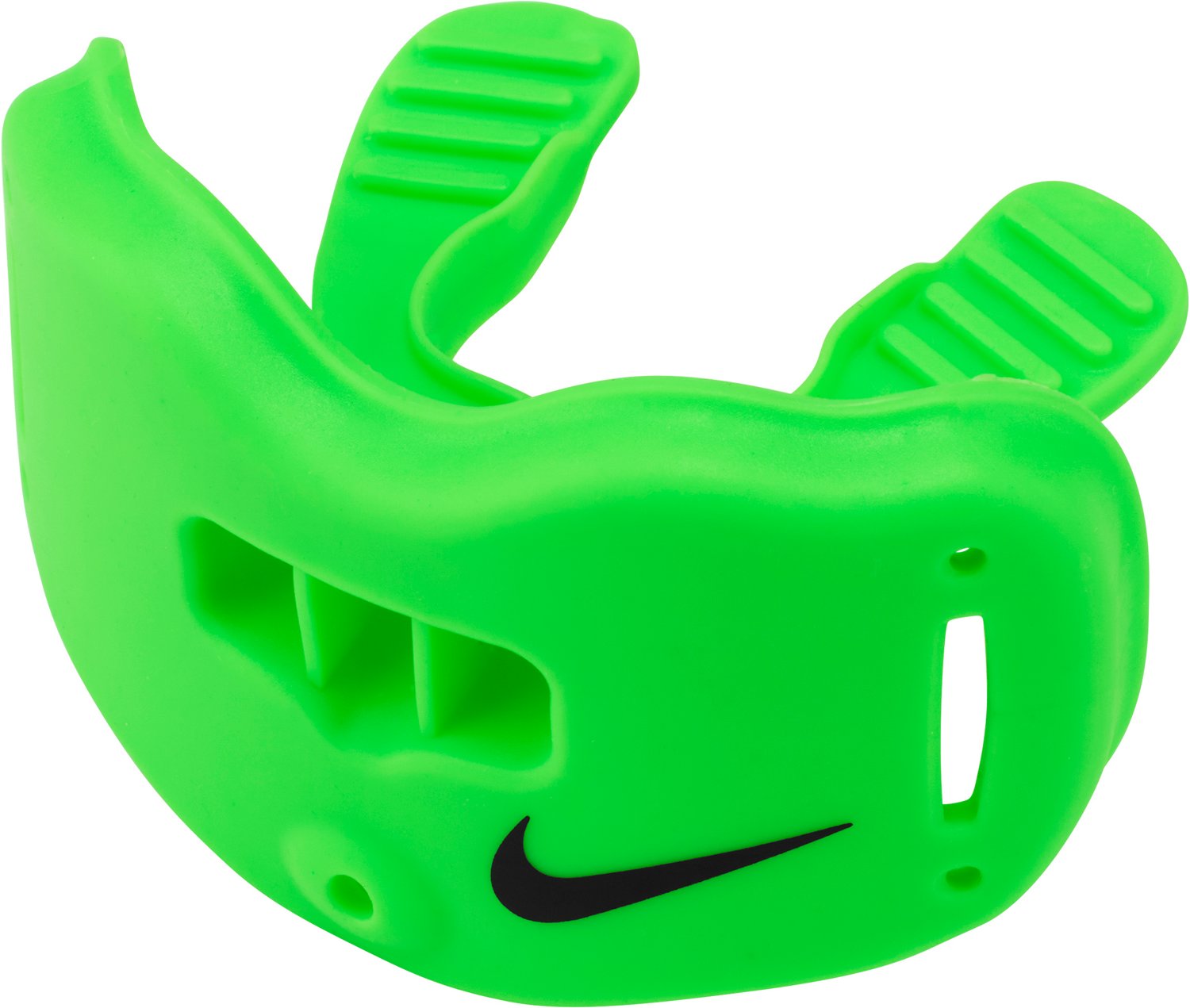 Protect your mouth on the field with the Nike Kids' Alpha Lip Protector 2.0 Mouth Guard. O-Flow breathing channels improve oxygen intake, while the contoured fit offers comfortable wear. The mouth guard is made of thermoplastic elastomer and polypropylene to help absorb impact for increased protection.