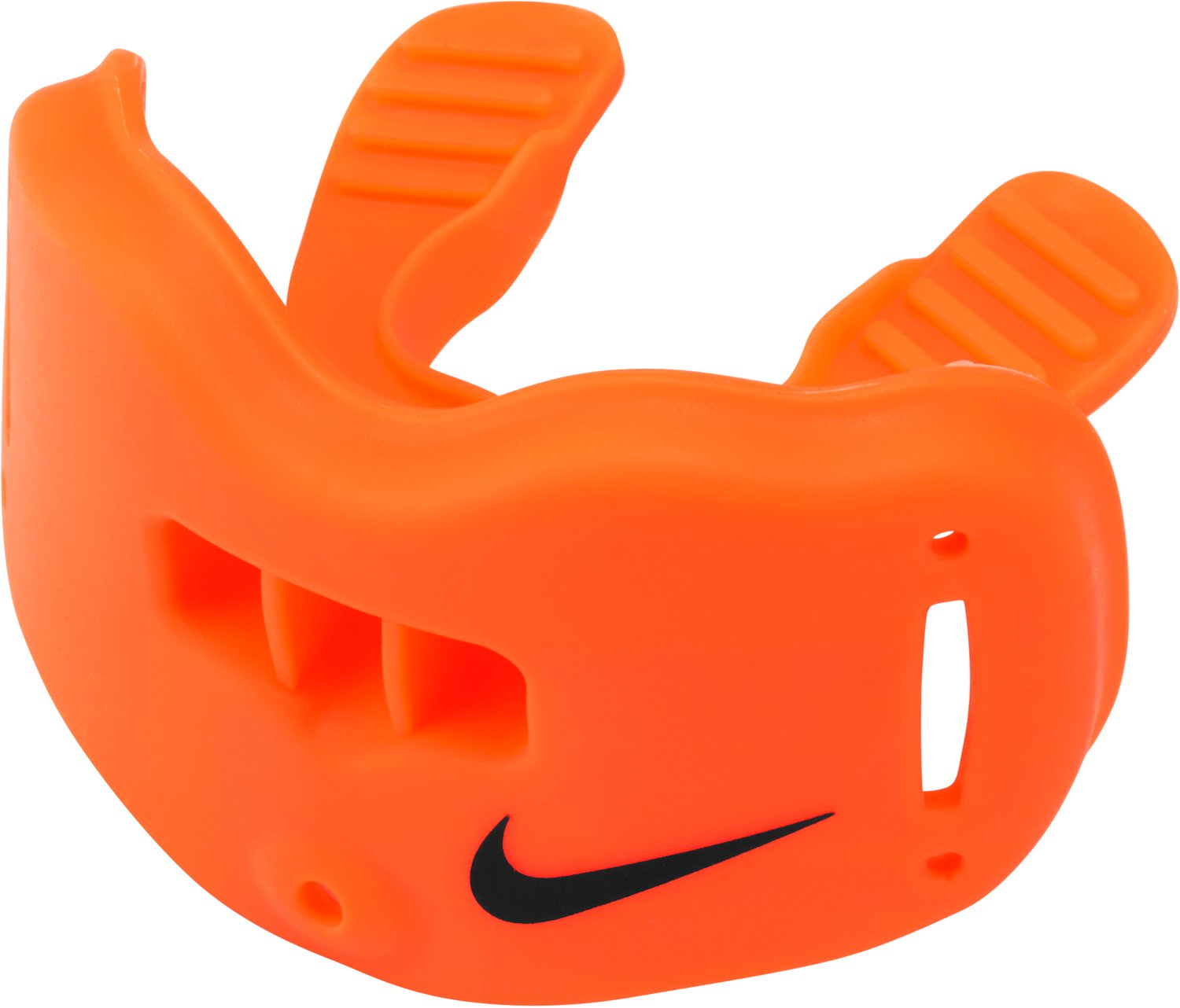Protect your mouth on the field with the Nike Kids' Alpha Lip Protector 2.0 Mouth Guard. O-Flow breathing channels improve oxygen intake, while the contoured fit offers comfortable wear. The mouth guard is made of thermoplastic elastomer and polypropylene to help absorb impact for increased protection.