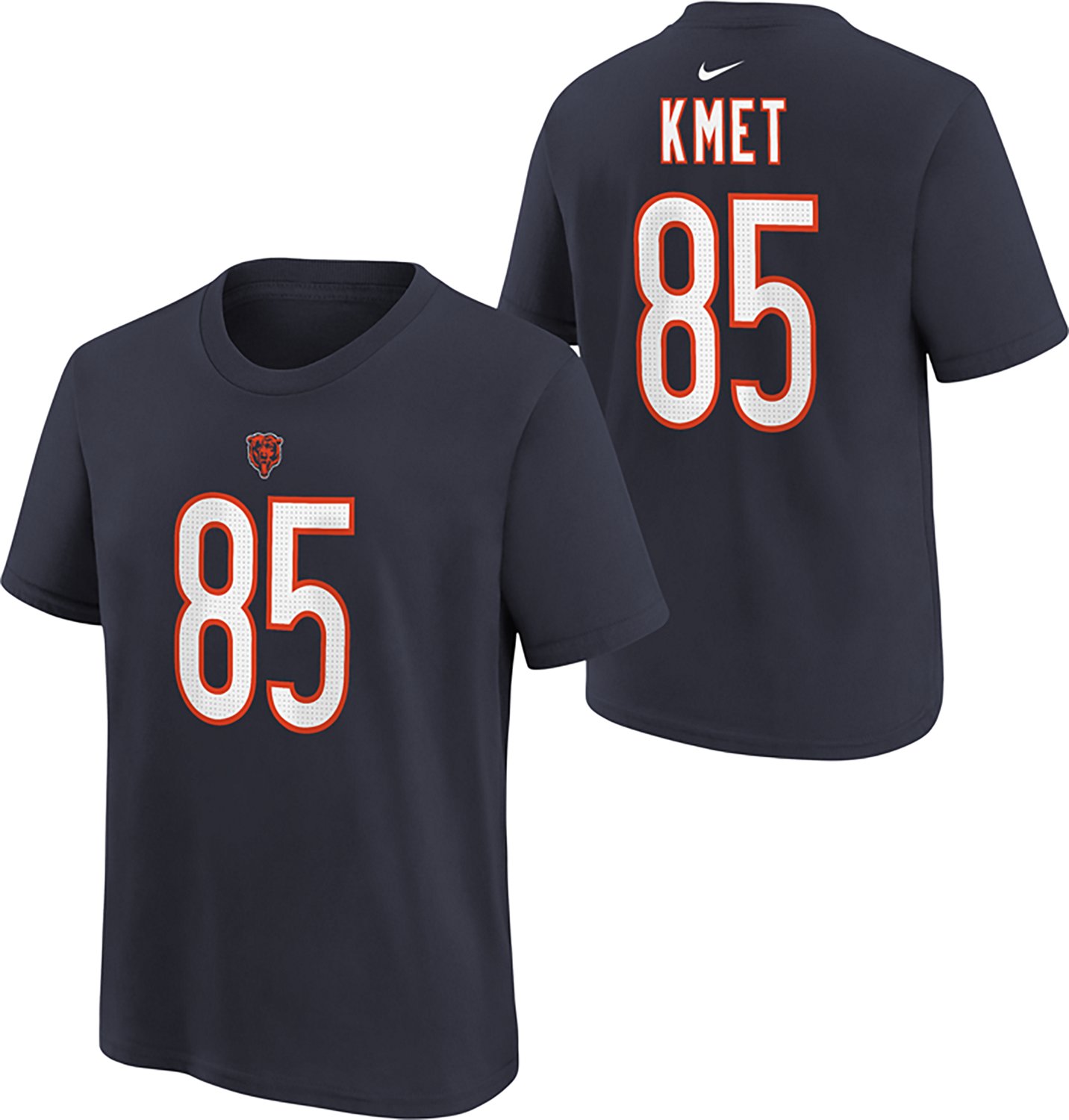 Cheer on your favorite pro sports team on gameday wearing this Nike Boys' Chicago Bears C. Kmet N&N T-shirt, featuring eye-catching player-centric graphics both upfront and on the back. Its 100% cotton jersey construction wears comfortably all outing long.