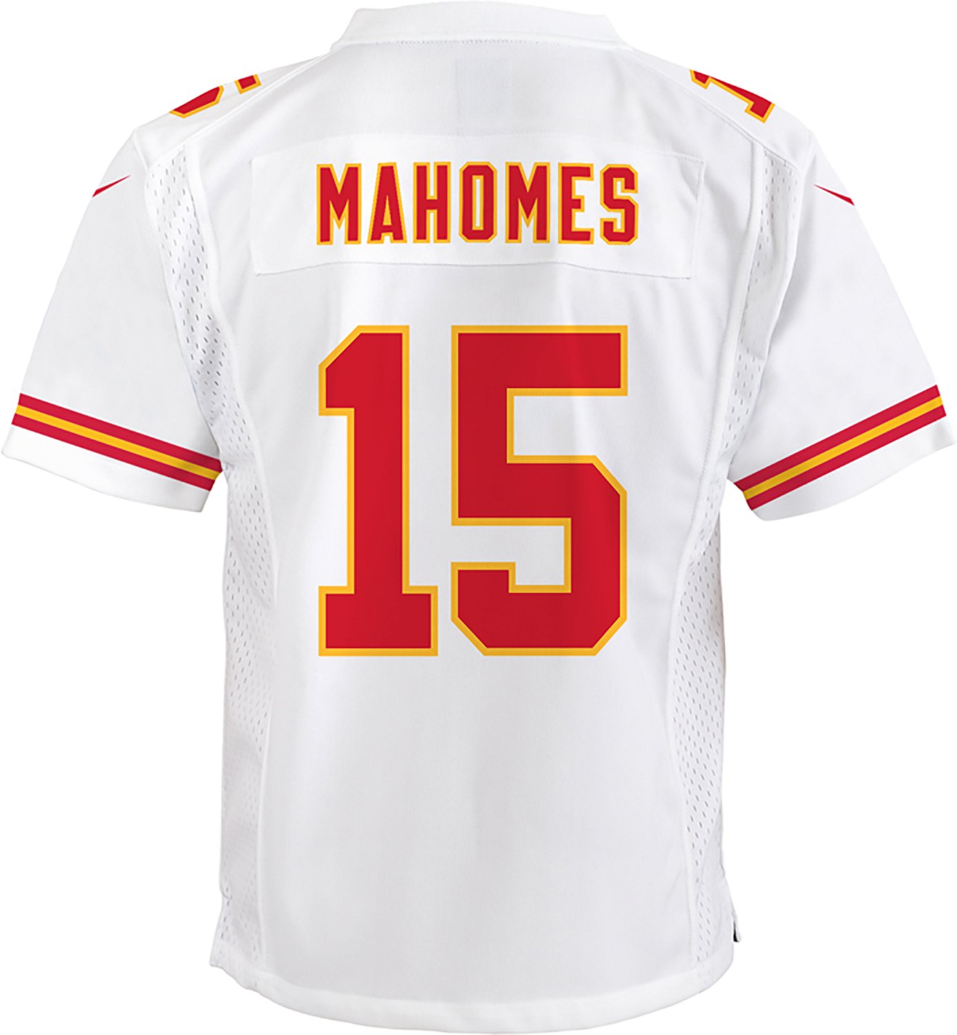 You can celebrate each and every victory with fellow fans when you wear the Nike Boys' Chiefs Patrick Mahomes Road Game Player Name & Number Jersey. This jersey is made of 100% polyester with mesh side panels to help keep you cool and comfortable, and its team and player screen prints make all the difference on gameday.