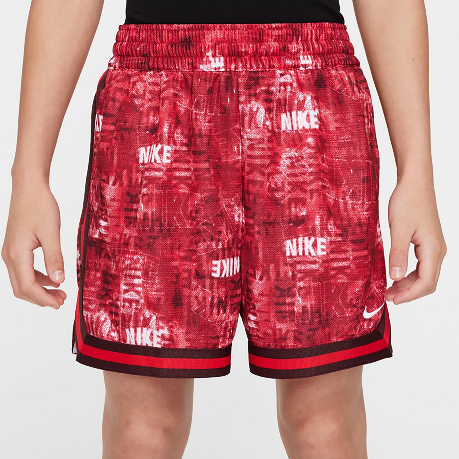 Dribble down the court in style with the Nike Boys' DNA Dri-FIT Basketball Shorts 5 in. The polyester material provides a comfortable feel, while the Dri-FIT technology helps keep you cool and dry. The elastic waistband and internal drawstring combo offers a custom fit, and the allover print adds a stylish touch.