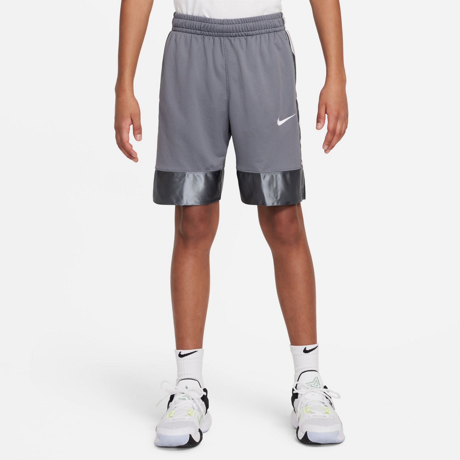 He can head to the court in the Nike Boys' Dri-FIT Elite Basketball Shorts. These shorts are made of 100% polyester fabric that is soft and lightweight and has printed details for a stylish touch. The Dri-FIT technology helps keep him dry and comfortable.