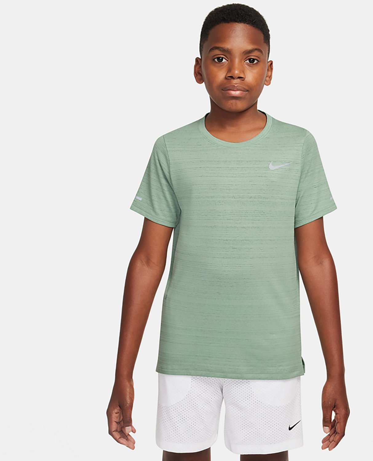 Look good and stay cool with the Nike Boys' Dri-FIT Miler Short Sleeve Shirt. It is made of 100% polyester for lasting wear, and the Dri-FIT technology moves sweat away from your skin for quick evaporation.