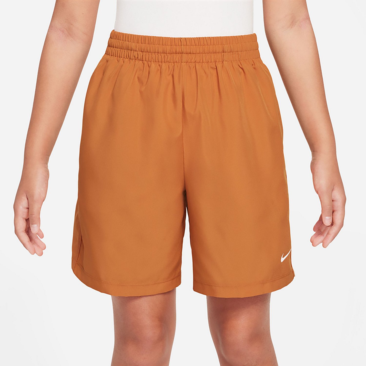 He can stay comfy in the Nike Boys' Dri-FIT Multi+ Woven Shorts 6 in. These shorts are made from polyester woven fabric for lightweight durability. The elastic waistband with a drawstring provides a secure fit, while the Dri-FIT technology keeps him dry.
