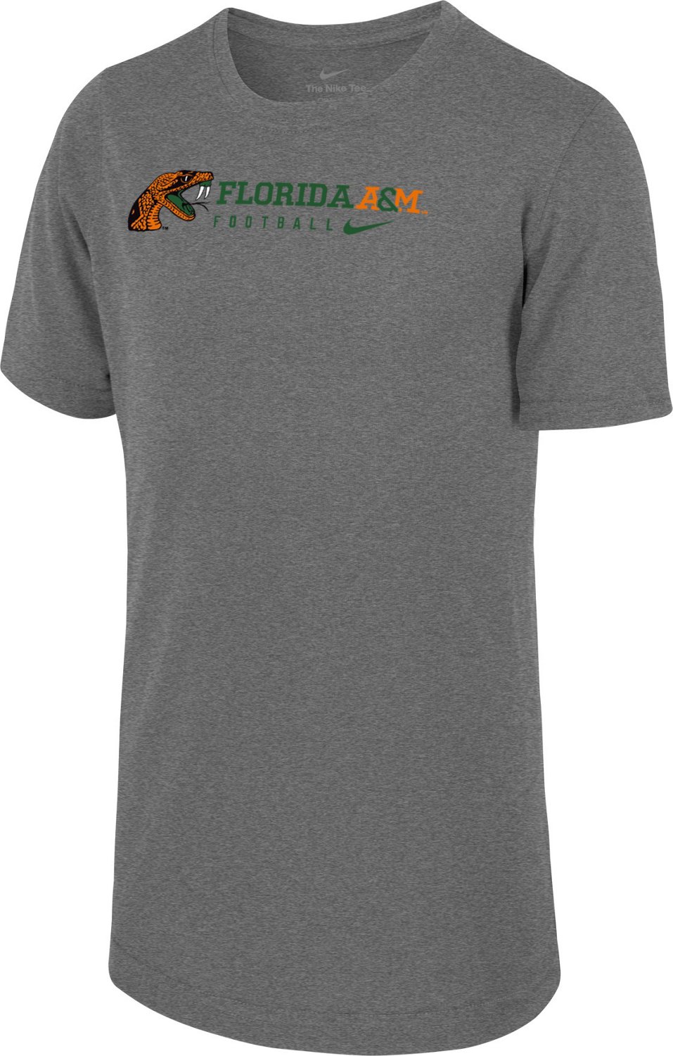 When you wear the Nike Boys' Florida A&M University Dri-FIT Legend 2.0 T-shirt, it's easy to show love for the Rattlers. This T-shirt is made of 100% polyester with Dri-FIT technology to help keep you feeling comfortable if you sweat, and the chest offers a bold, screen-printed graphic to show FAMU team pride.