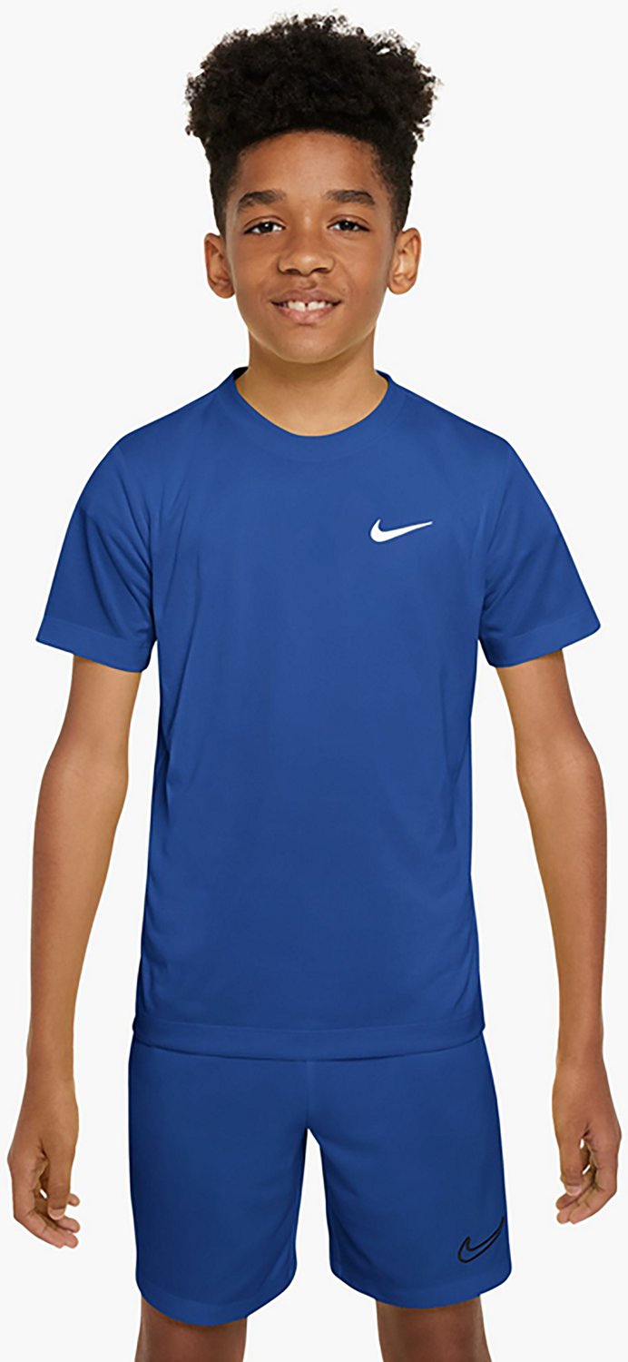 Look and stay cool in the Nike Boys' Legend Dri-FIT T-shirt. It is made of 100% polyester. The Dri-FIT technology moves sweat away from your skin for quicker evaporation, and its single knit jersey fabric is soft and lightweight. The crew neckline finishes off the design.