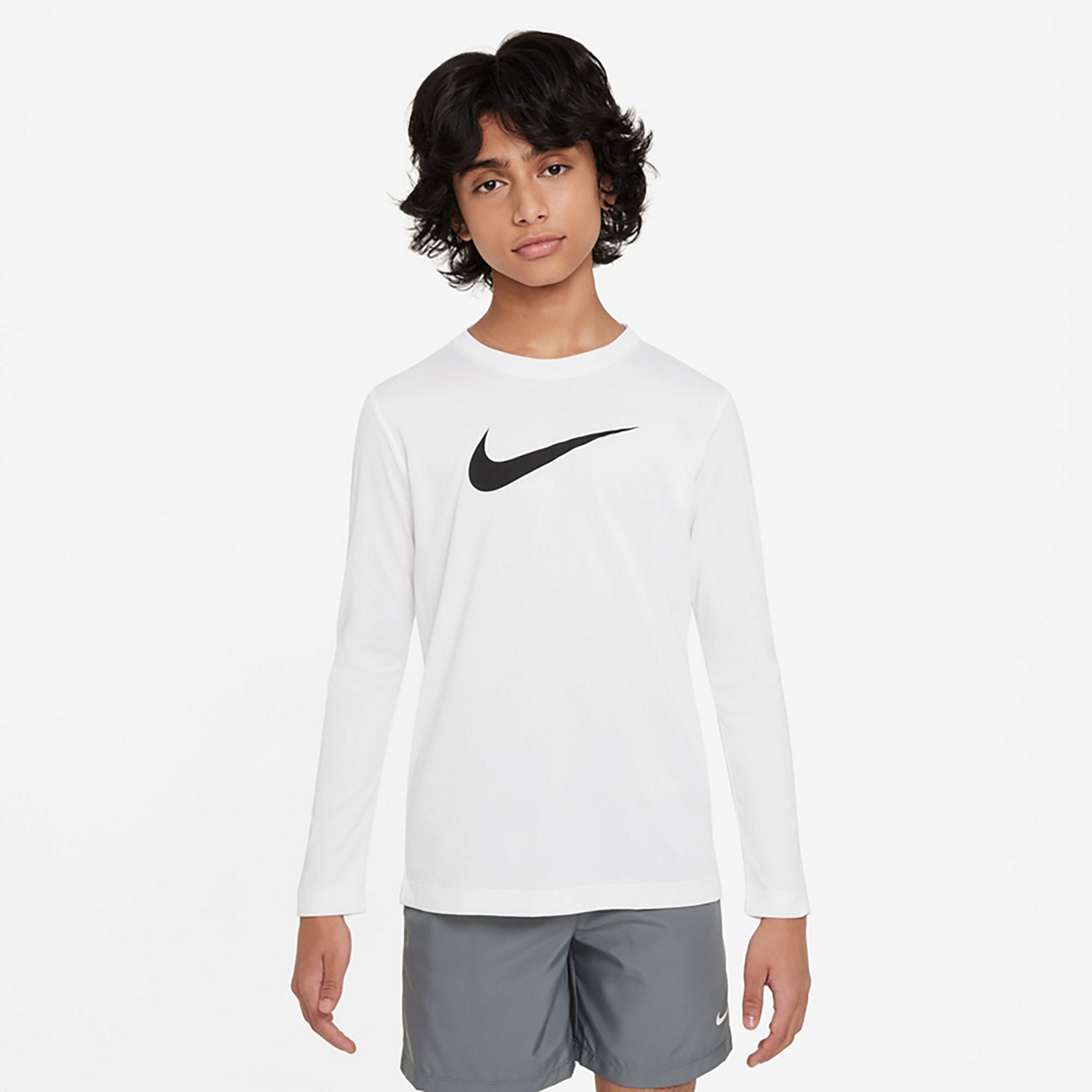Play hard in the Nike Boys' Legend Long Sleeve T-shirt. The polyester material provides a comfortable feel, while the Dri-FIT technology wicks away sweat to keep you cool and dry. The Swoosh logo adds a stylish touch.