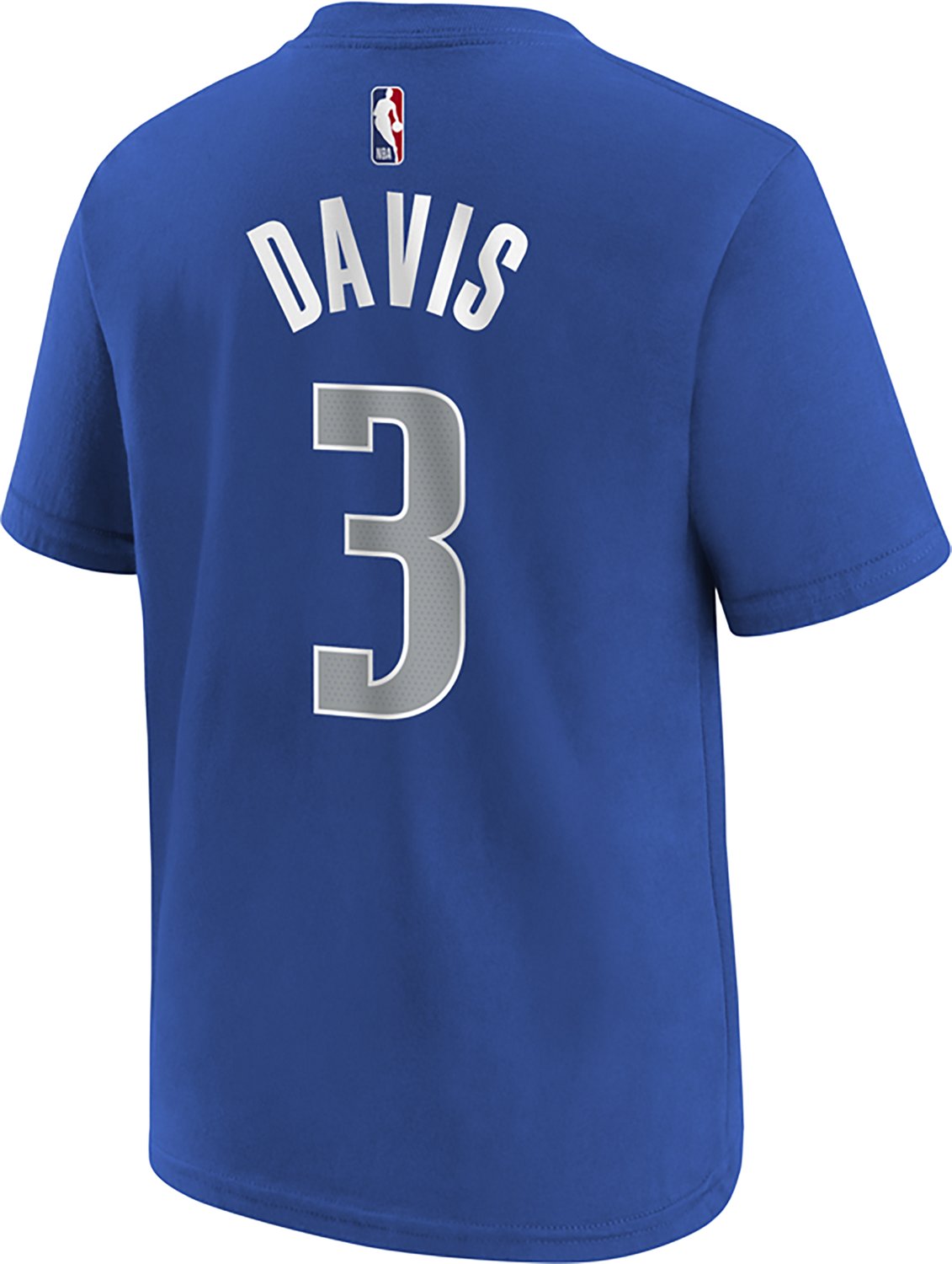 Let everyone know you're a true fan when you wear the Nike Boys' Mavericks A. Davis Icon N&N T-shirt. The cotton fabric offers a soft, comfortable feel, and the team graphic puts fan spirit front and center.